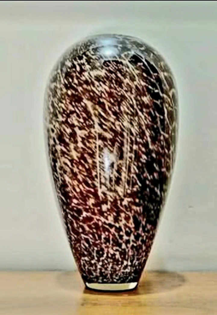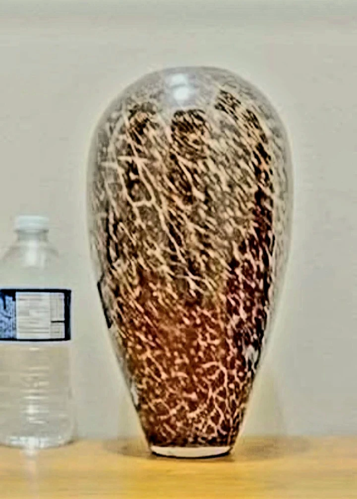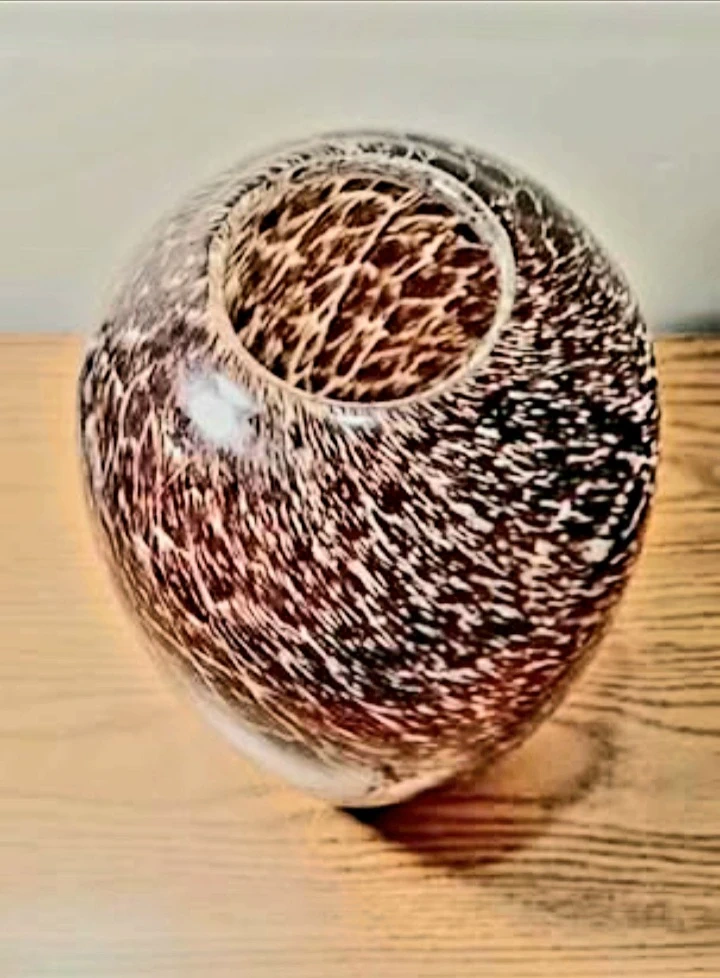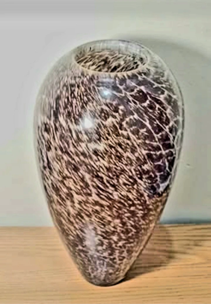 Vintage 1960s Unique art Italian Murano Crystal Vase featuring a distinctive Trotoiseshell pattern, perfect for adding a touch of elegance to any room. This vase is in very good condition, no chips or cracks