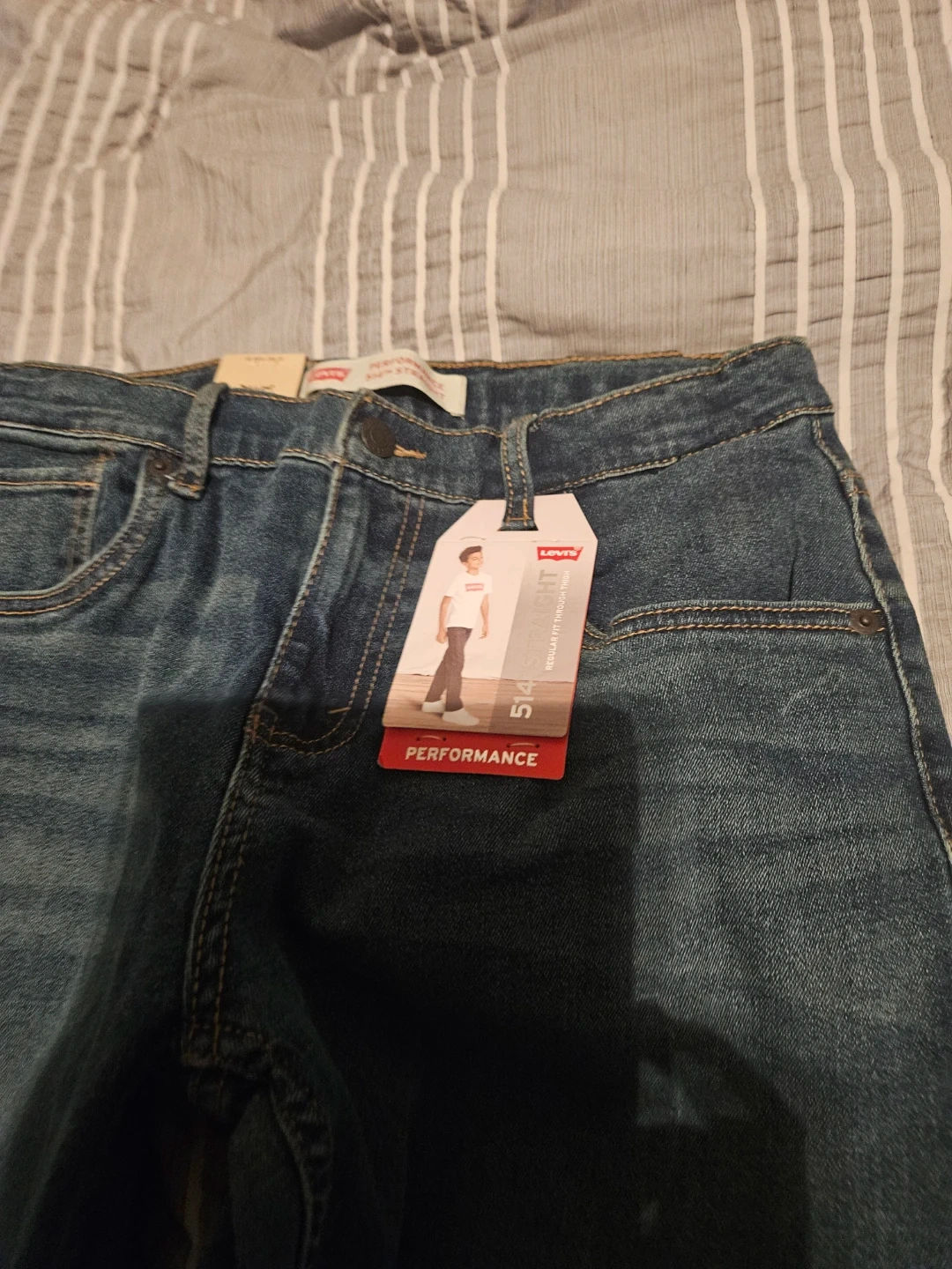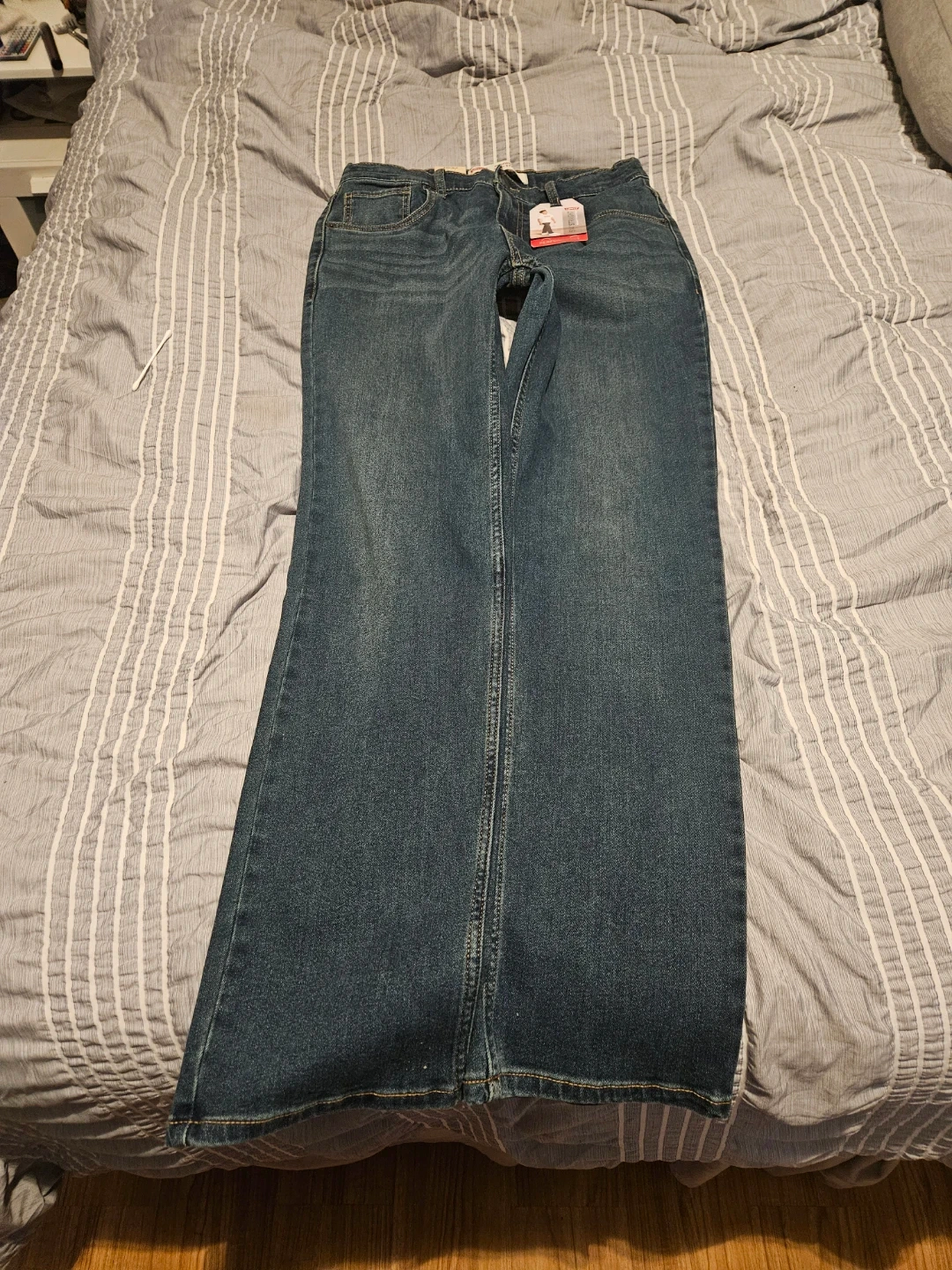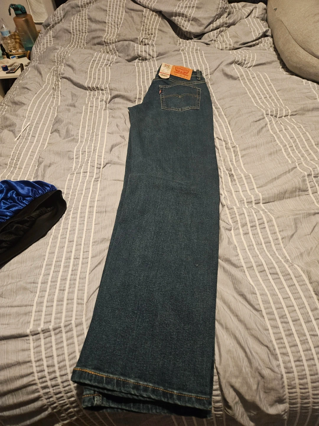 Levi's 514 Straight jeans in size 18 Regular, 29x31! These jeans are a regular fit through the thigh and have an adjustable waistband. They also contain recycled plastic bottles. The original price was $40