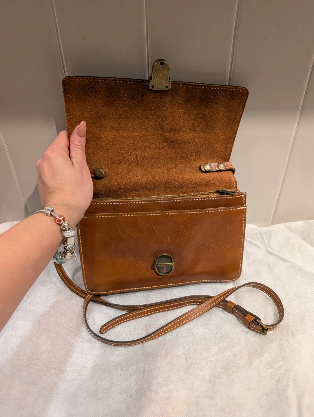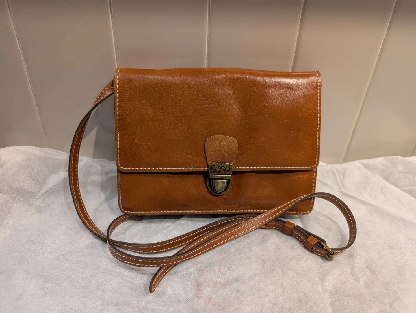 Selling a lovely brown leather crossbody bag from The Bridge! It's in great condition and perfect for everyday use. The leather is a beautiful shade of brown and the bag has a classic, timeless look