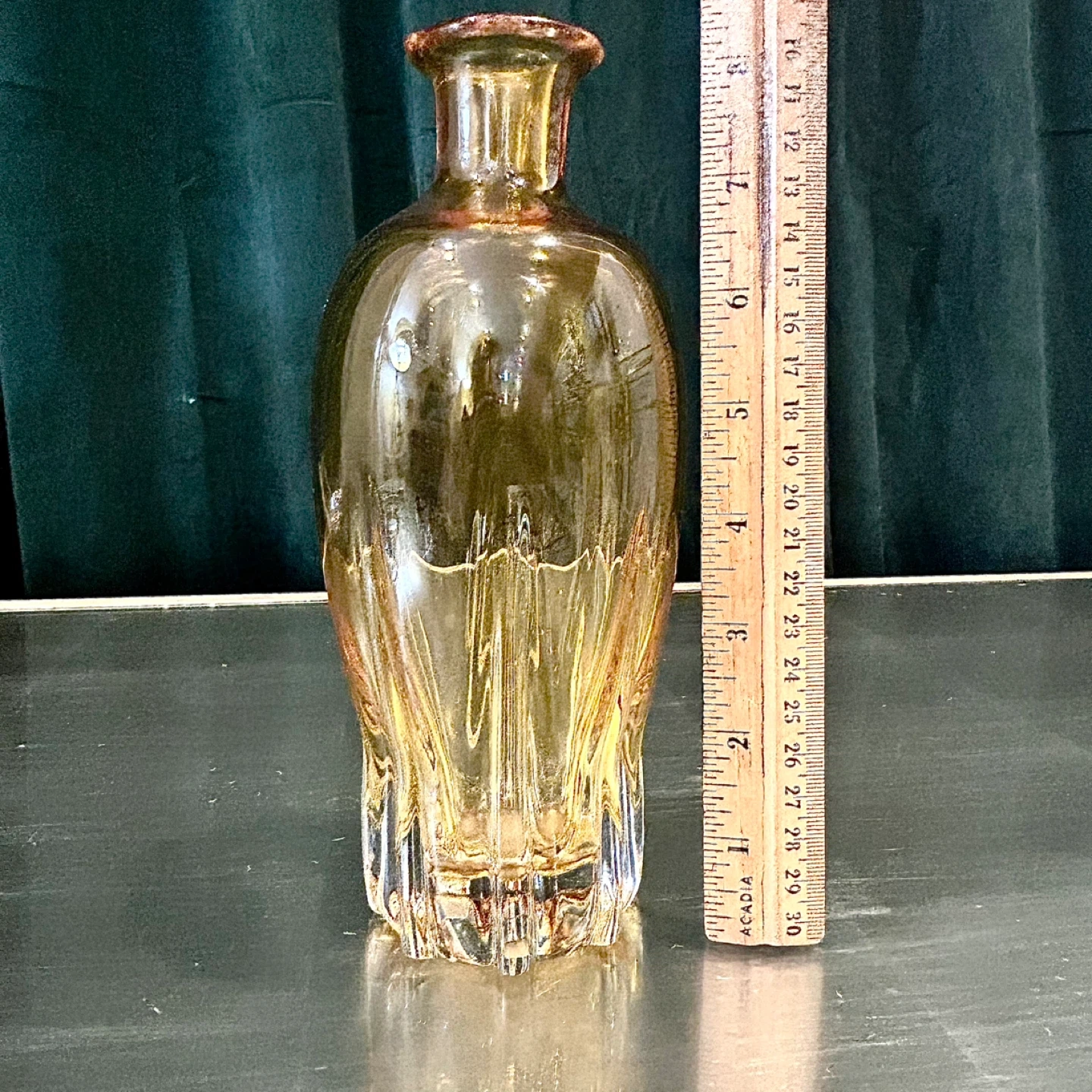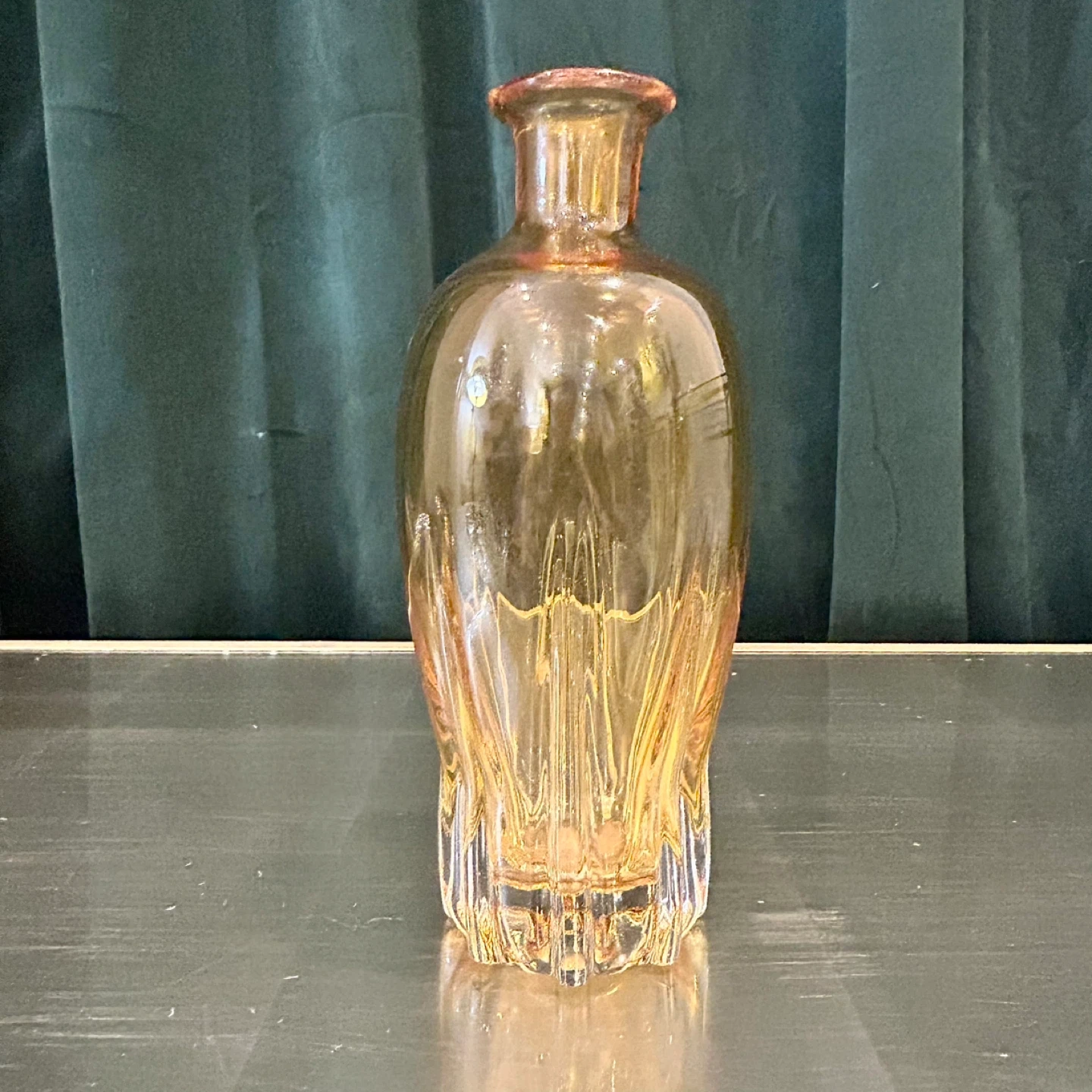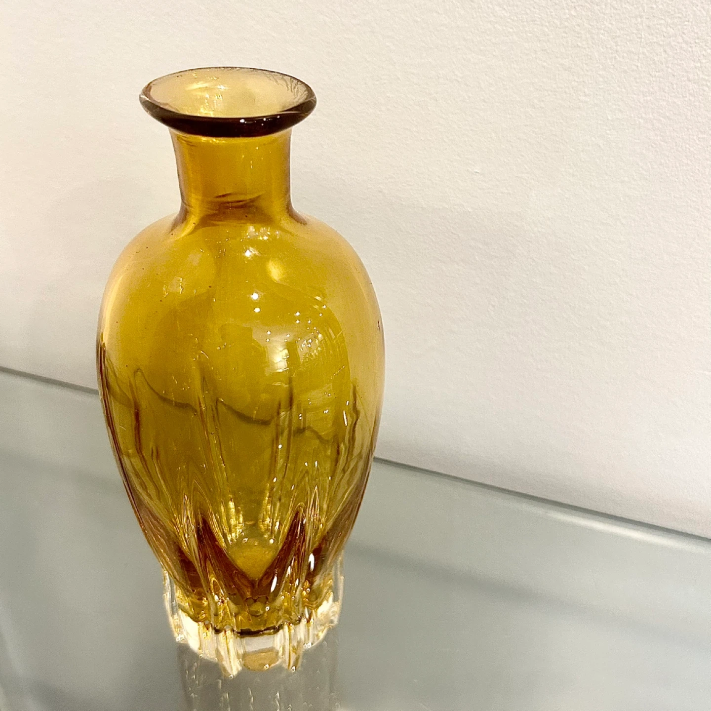 The glass exhibits a warm honey-to-amber hue that deepens toward the lower body, a hallmark of early continental production.