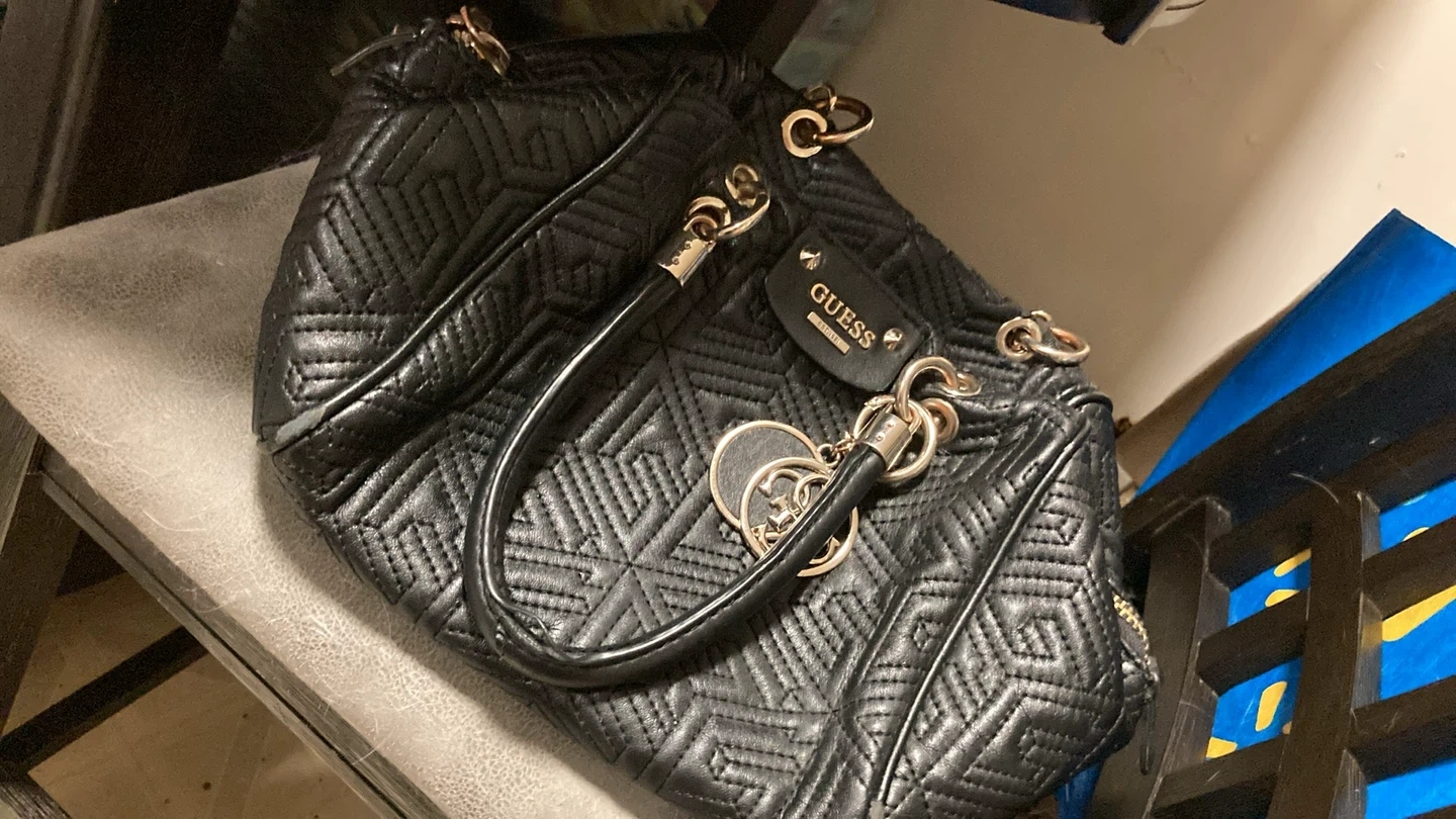 Selling a stylish Guess handbag in black with a quilted pattern. It has some signs of wear as shown in the pictures, but still has plenty of life left. Perfect for everyday use!