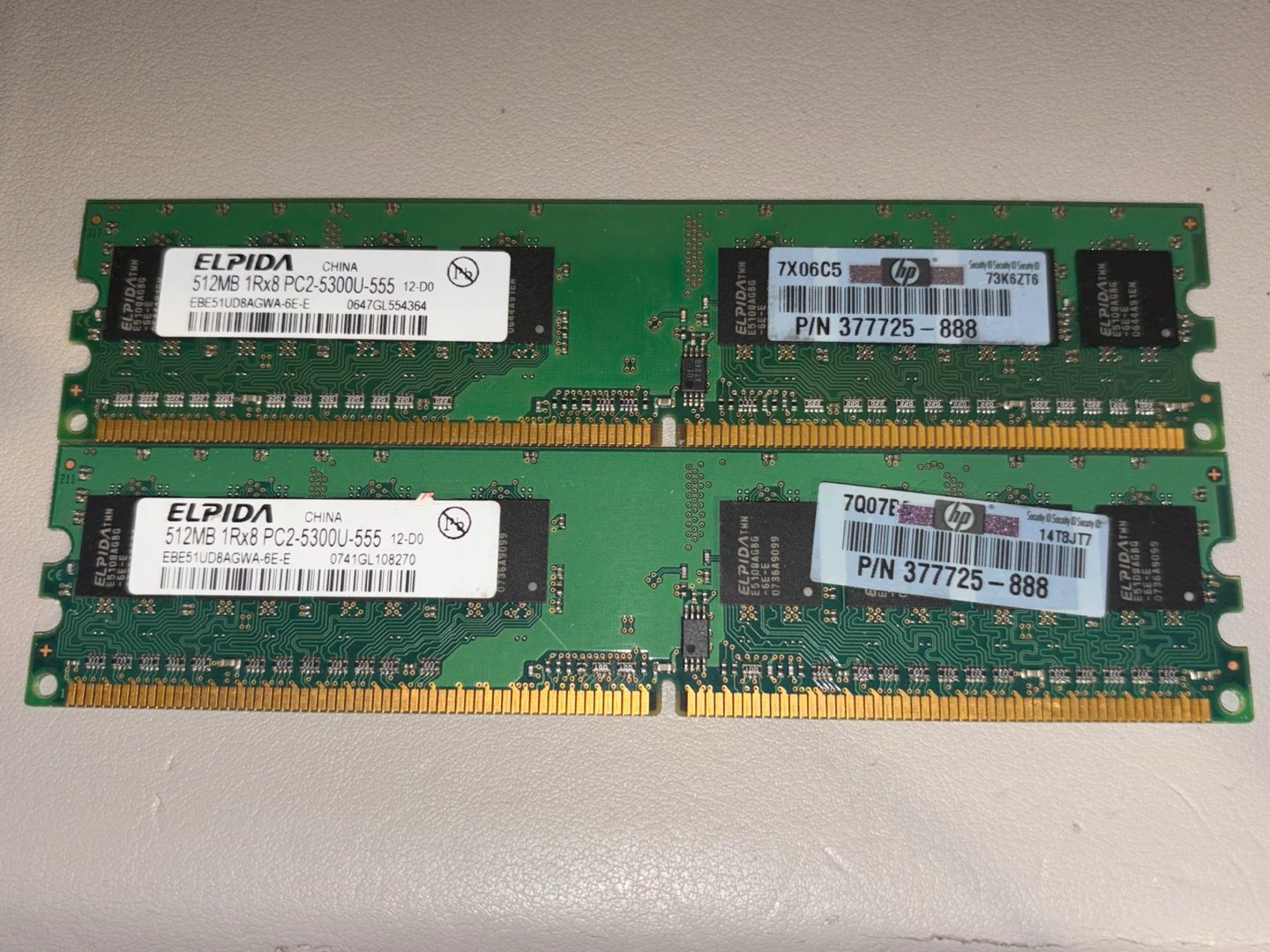 1 / 11 / 1Buy & SellElpida 512MB RAM Sticks (2x)Elpida 512MB RAM Sticks (2x)$5Selling two Elpida 512MB 1Rx8 PC2-5300U-555 RAM sticks. They're in good condition and ready to be used in your computer build!ConditionGoodBrandElpidaWHERE TO MEETWestside mallView MapSELLERverifiedJayBeechborough1075 reviews1 chats·1 favorites·23 viewsSEND CHAT TO SELLERHi Jay! I’m interested in your listing.Hi Jay! I’m interested in your listing.Get the Karrot app to chatSign In to chat