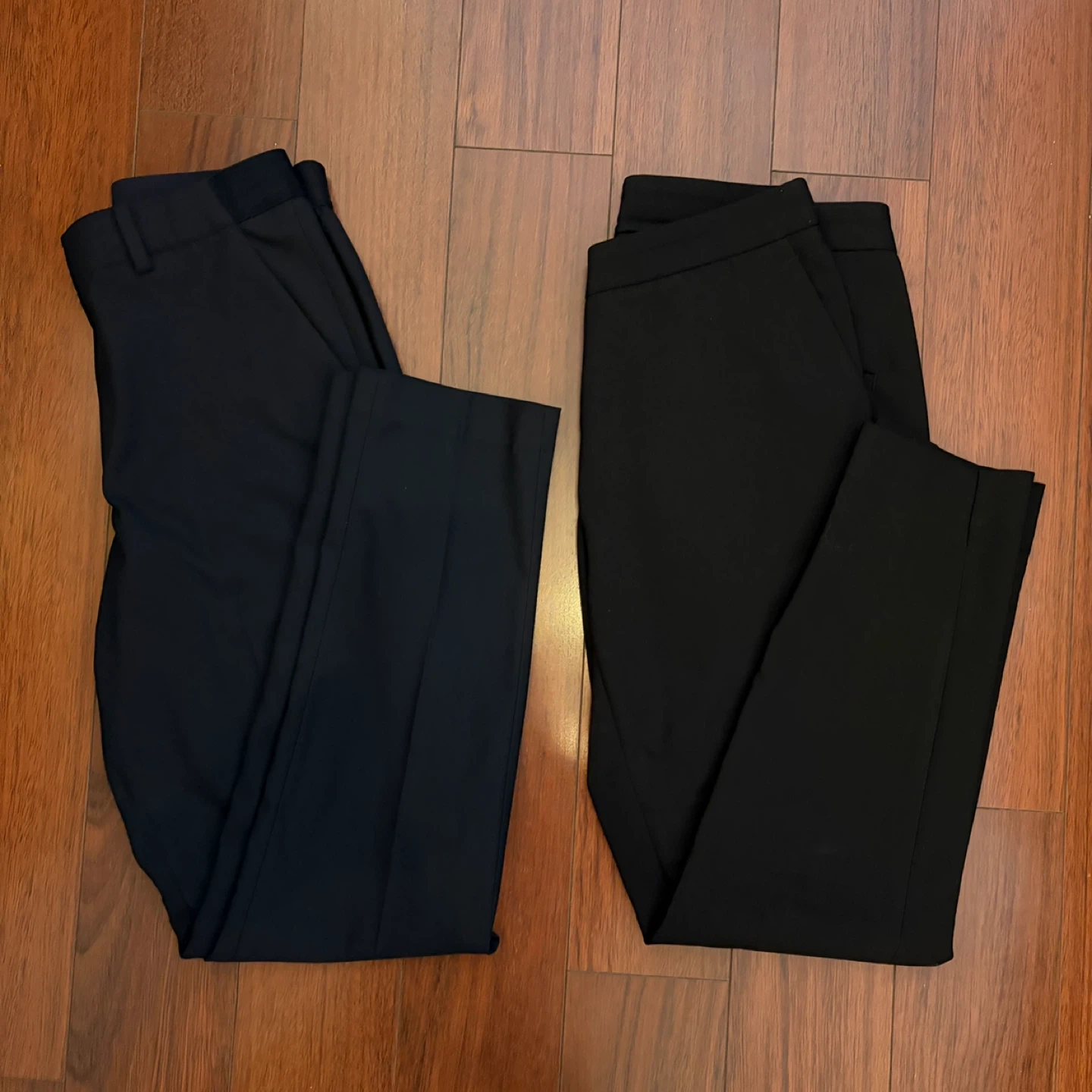 Selling 2 trousers that are short girl friendly (I’m 5’2” or 157 cm for reference)! The navy pair on the left is from Uniqlo, size XS, with a waist of 24-25 inches. The black pair on the right is from H&M, size 4. Both in great condition and only worn a couple of times