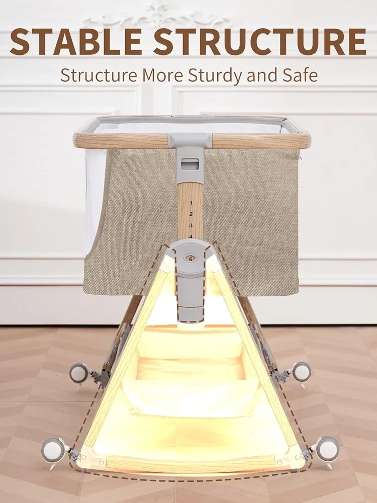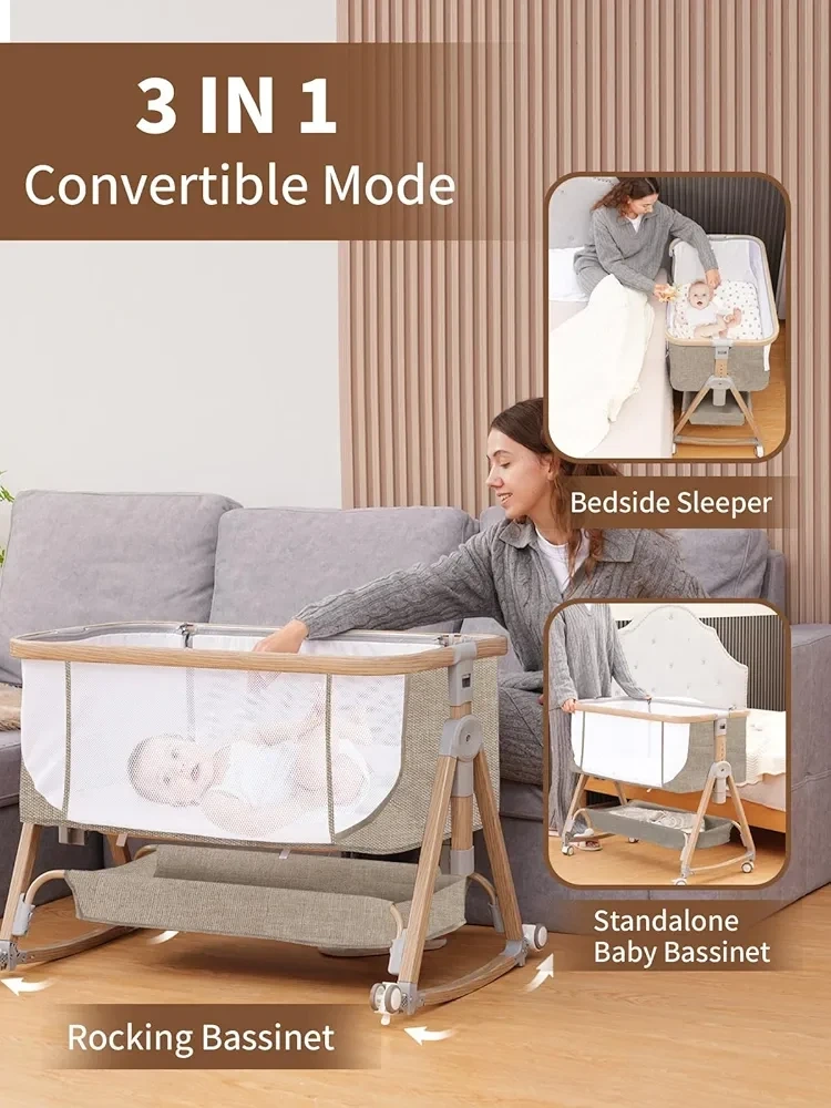 Baby Bassinet, Basinet Bedside Sleeper with Waterproof Bassinet Sheets and Soft Mattress, Safe Adjustable Height Bedside Bassinets with Wheels, Girl/Boy Bassinets, Jestonten (Khaki)