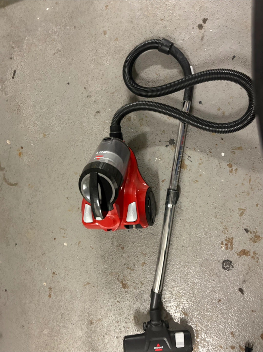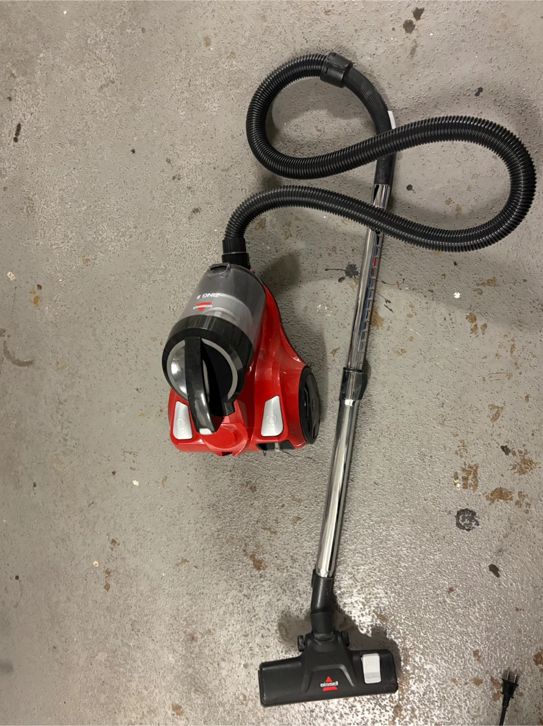 Selling a Bissell Zing II bagless canister vacuum in red. It's lightweight and easy to manoeuvre around the house. Perfect for quick cleanups!