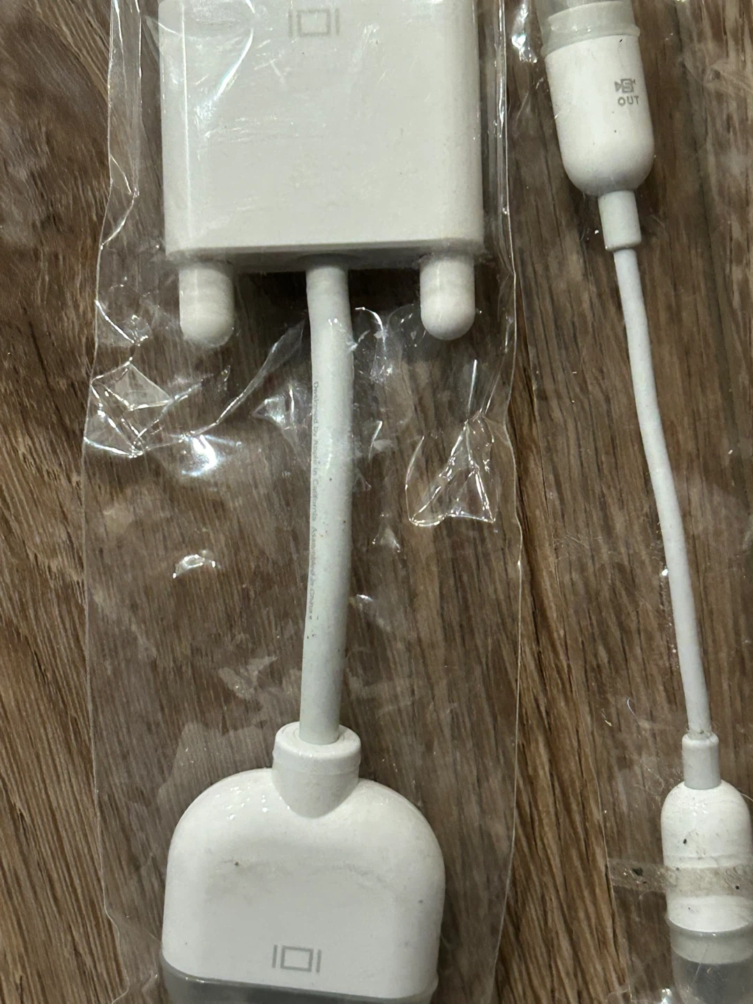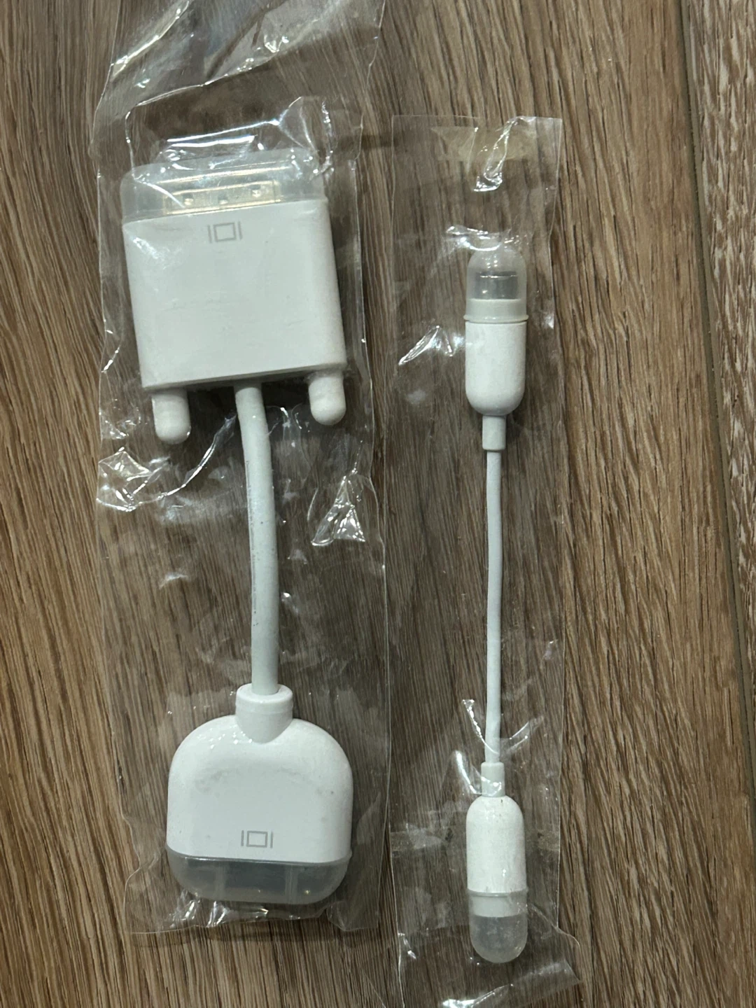 Selling two Apple adapters: a DVI adapter and a Composite AV adapter. Both are in their original packaging.