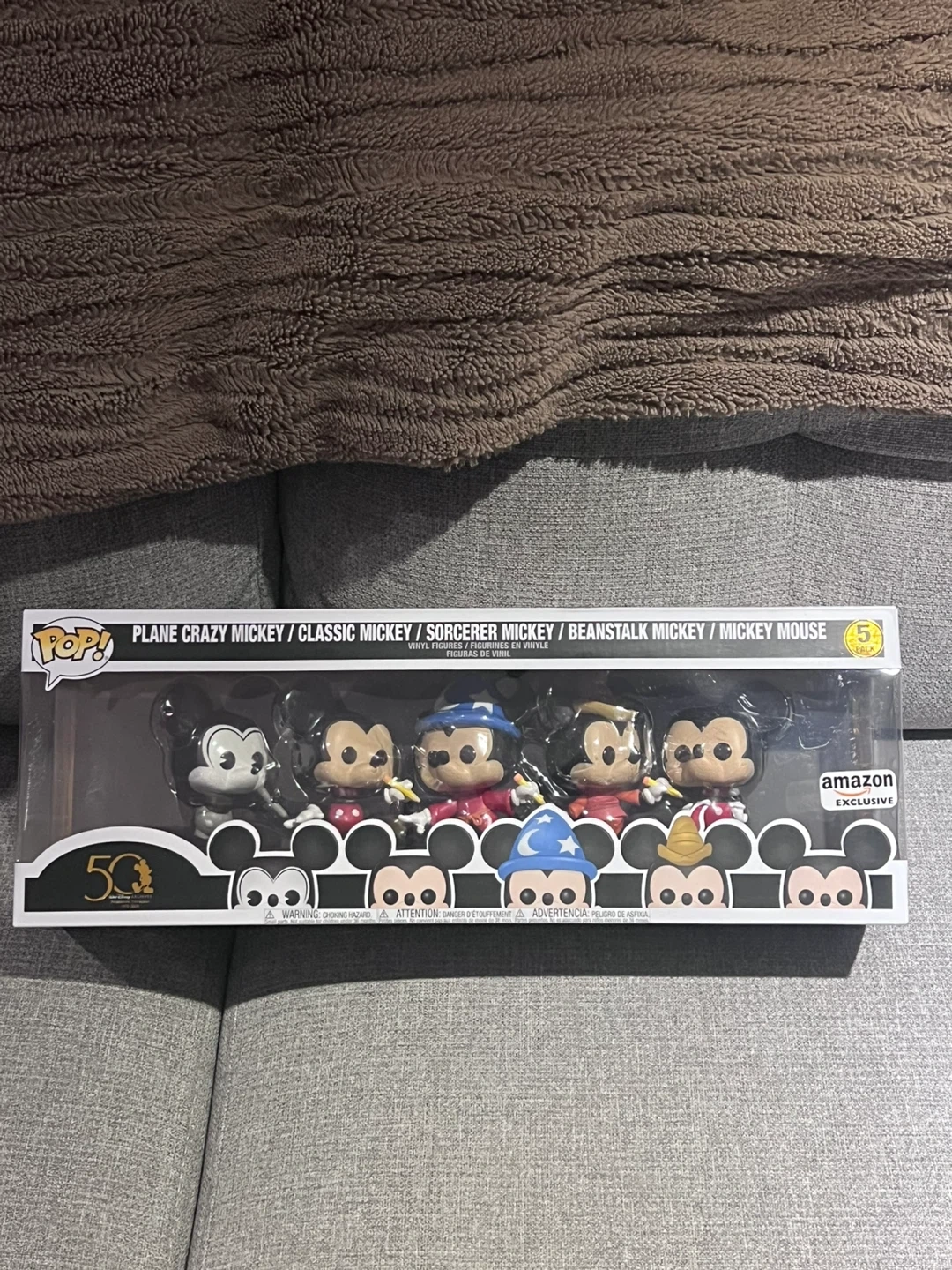 Selling a Funko Pop! 5-pack of Mickey Mouse figures. This set includes Plane Crazy Mickey, Classic Mickey, Sorcerer Mickey, Beanstalk Mickey, and Mickey Mouse. It's an Amazon exclusive!