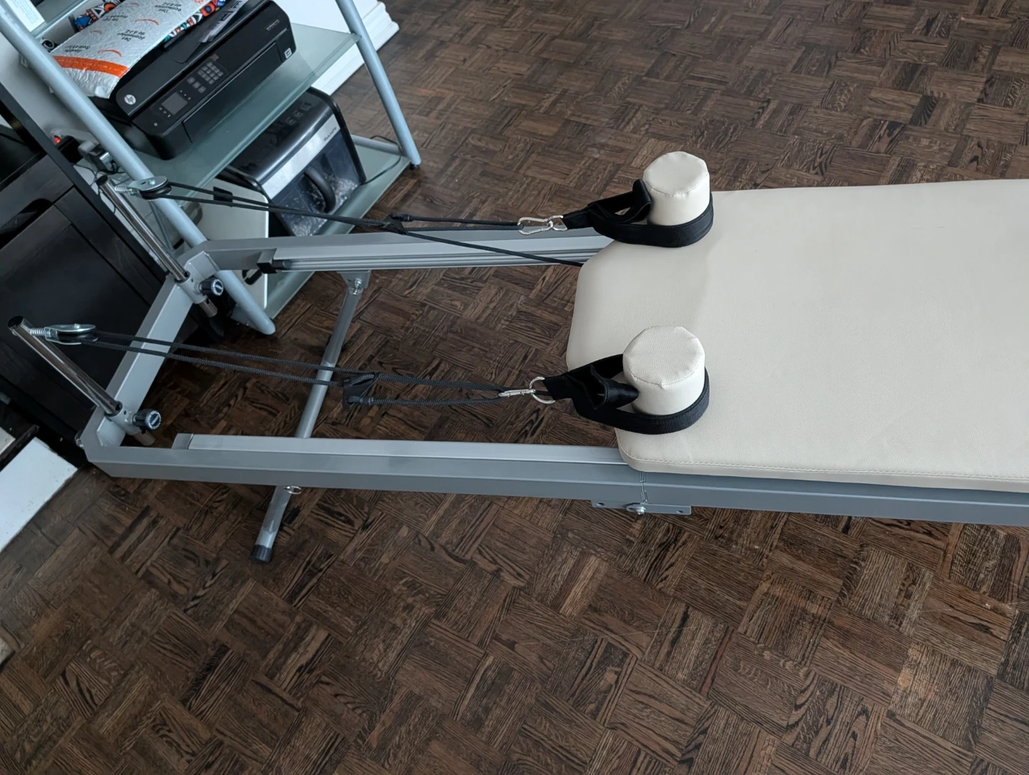 Selling a Pilates reformer machine. It's in great condition and ready for someone to use. Perfect for home workouts!