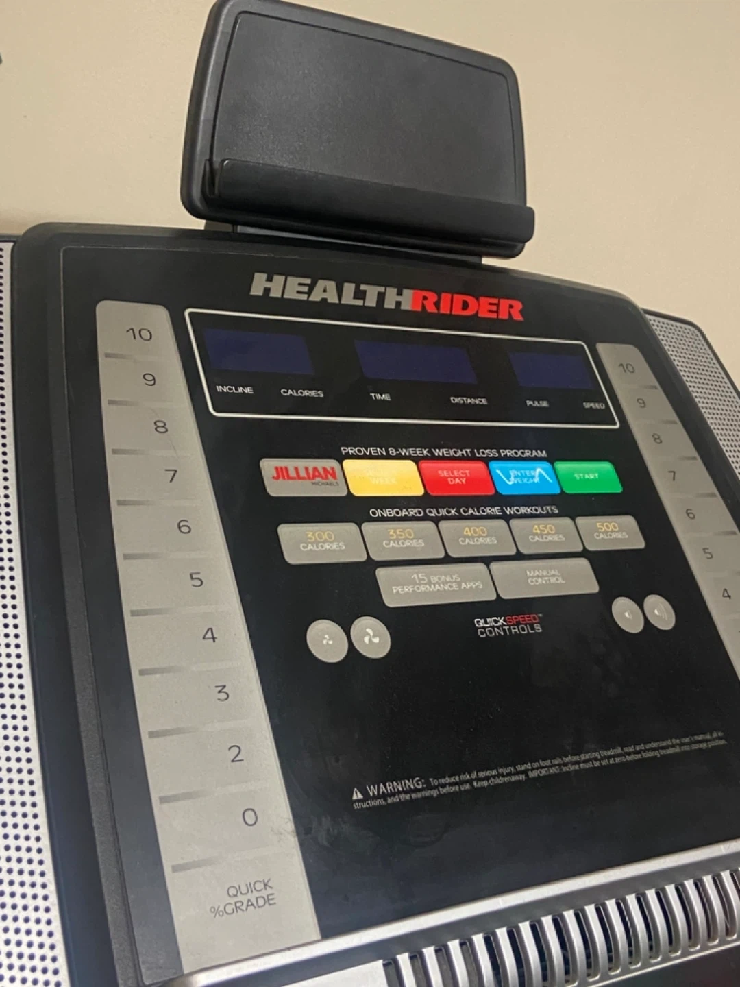 Get your sweat on with this HealthRider treadmill! It features onboard quick-calorie workouts and quickspeed controls. It also has a proven 8-week weight loss program to help you reach your fitness goals. Perfect for anyone looking to stay active at home