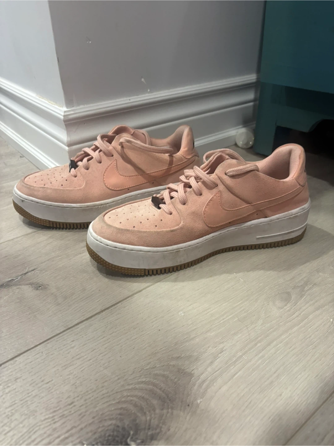 Selling a pair of Nike Air Force 1 Sage Low sneakers in a lovely pink colour! They're in great shape and ready for a new adventure. The size is US 8.5, These are super stylish and comfy!