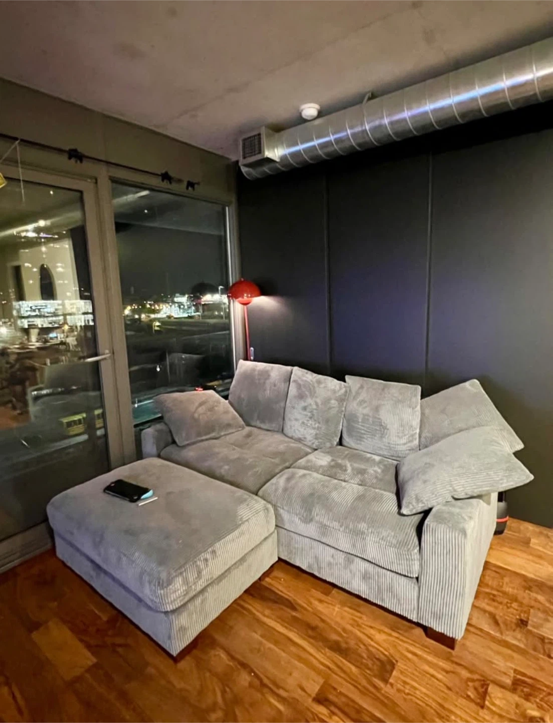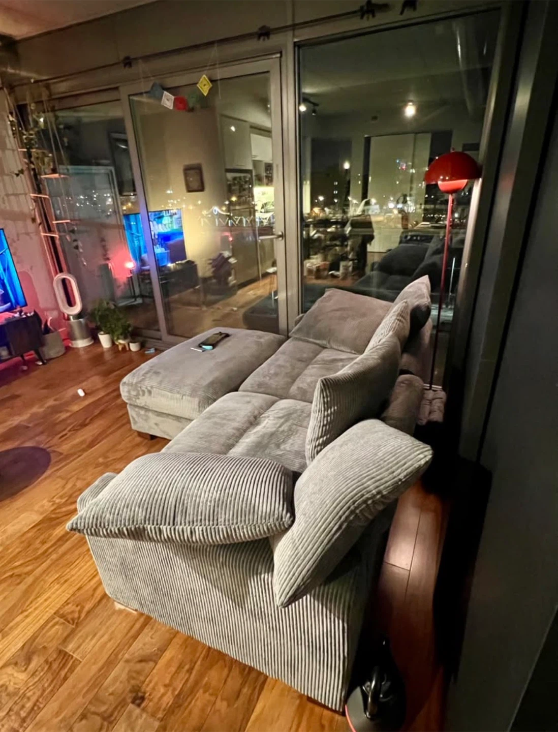 I love this couch. It's very comfy, spacious and I can sleep on it easily while watch tv. I'm selling because I like different colour - green :) .