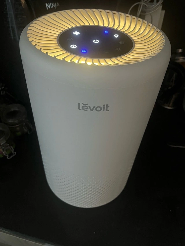 Keep your air clean with this Levoit air purifier, equipped with a HEPA filter, ideal for removing dust, pollen, and odors from your living space. This unit has been gently used and is in great working condition. Key features include: * HEPA filter * 3 fan speeds * Night light mode * Timer settings This air purifier is perfect for bedrooms, offices, or any small to medium-sized room. Let me know if you're interested!