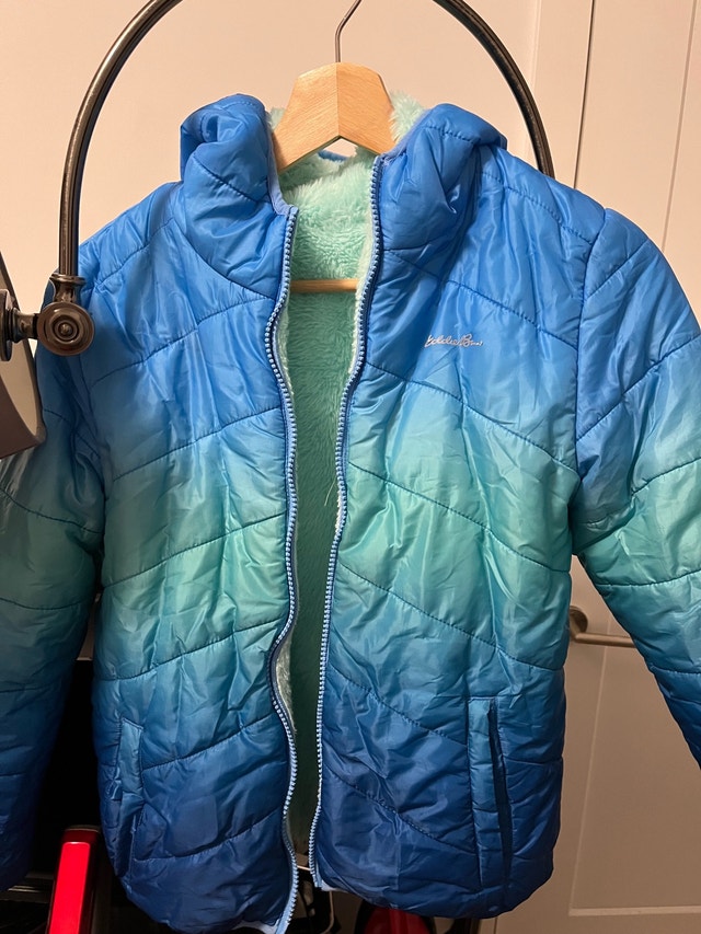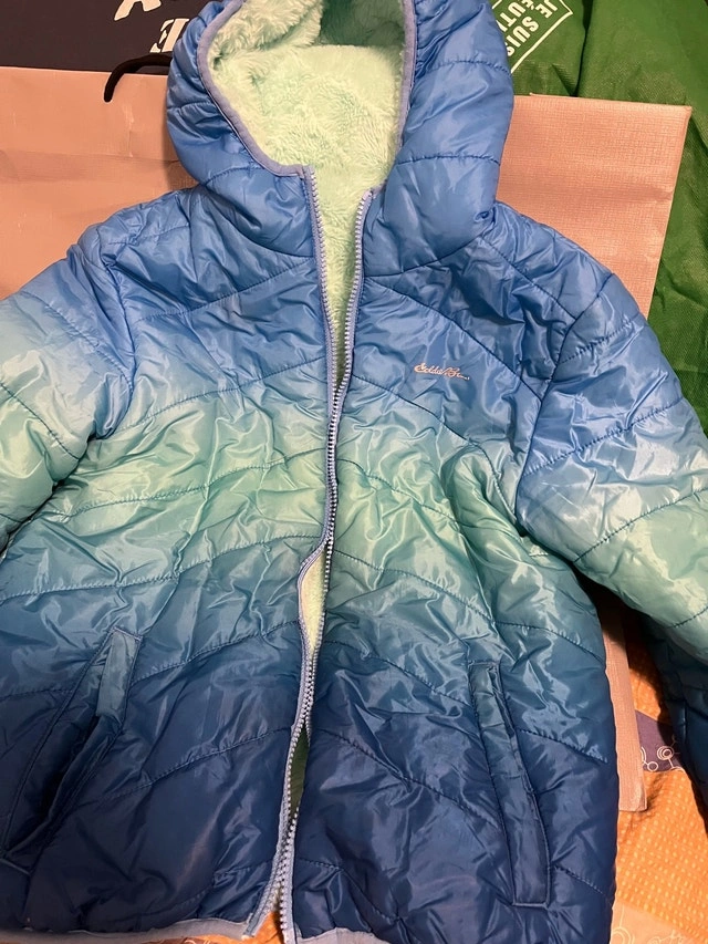 Looking to add some pizzazz to your little one's wardrobe? This Eddie Bauer jacket is just the ticket! It's like a warm hug on a chilly day. And remember, if the ad's up, it's still up for grabs!