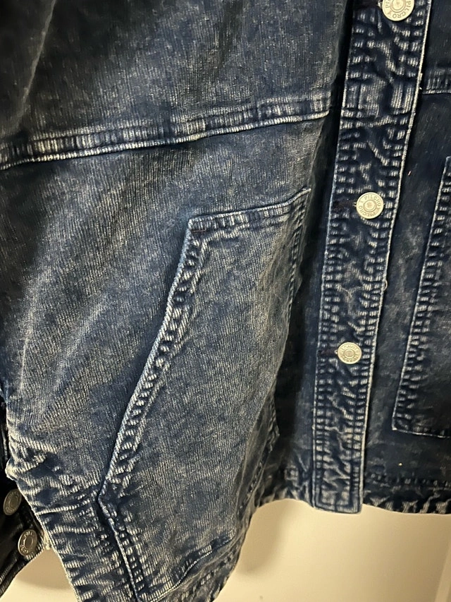 This Anthropologie Pilcro denim jacket features a stylish, slightly distressed acid wash and a utility design, perfect for adding a trendy touch to any outfit. While this jacket is in good condition, please note it is a used item. Here are some of its features: