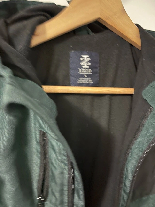 This is a dark green IZOD jacket, size S, perfect for outdoor play. It's in great condition, ready for a new home. The jacket is durable and stylish for your child's adventures. * Size: S * Brand: IZOD If the ad is up, it's still available!