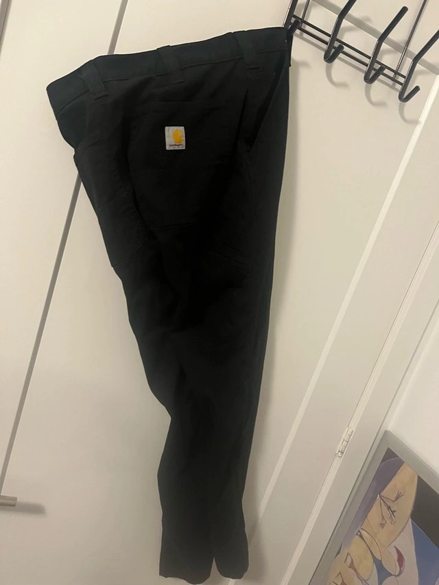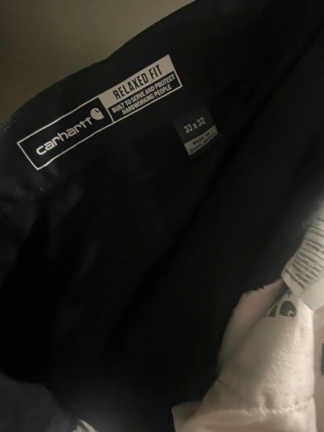 These black Carhartt pants are a relaxed fit and size 32x32. As you can see from the photos they're in good condition, ready for work or casual wear. They're durable and comfortable, perfect for any task!