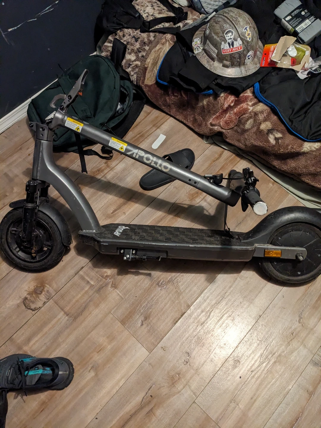 Selling an Apollo Air 2024 electric scooter! It's in great condition and ready for a new owner. This scooter is upgraded for 2024, offering a smooth and efficient ride. Originally, it retailed for $799.99. I got a new scooter so I want to get rid of this one I don't have the chargers but it works fine willing to sell it for half price or best offer