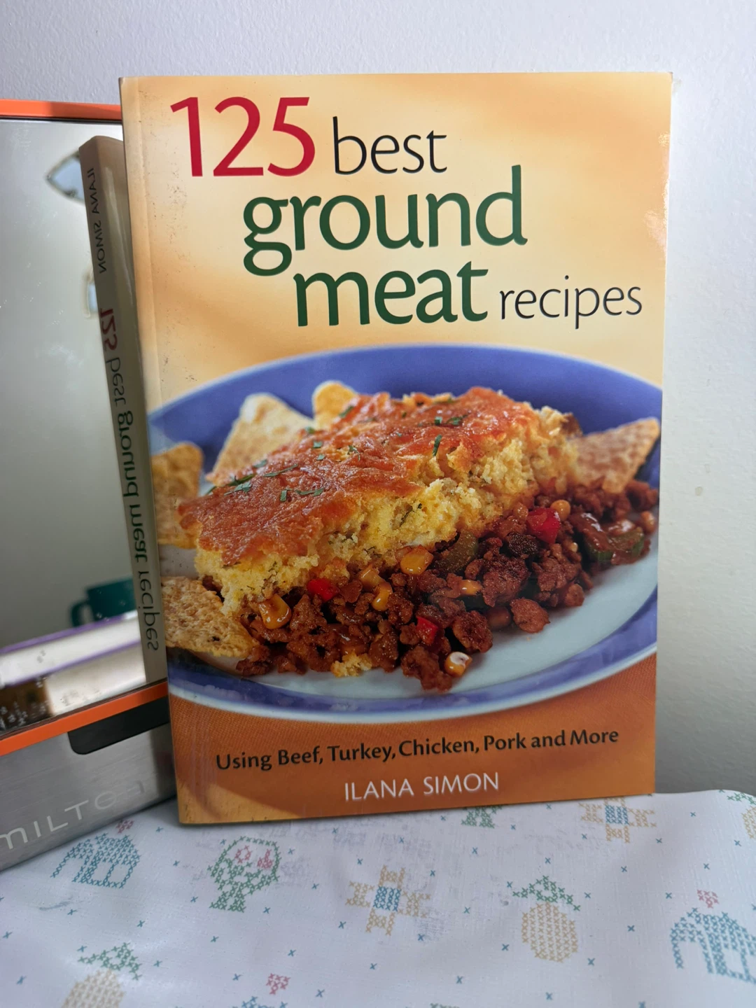 Selling a cookbook titled '125 Best Ground Meat Recipes' by Ilana Simon! This book features recipes using beef, turkey, chicken, pork, and more. It's perfect for anyone looking to expand their culinary skills with ground meat dishes. Soft cover