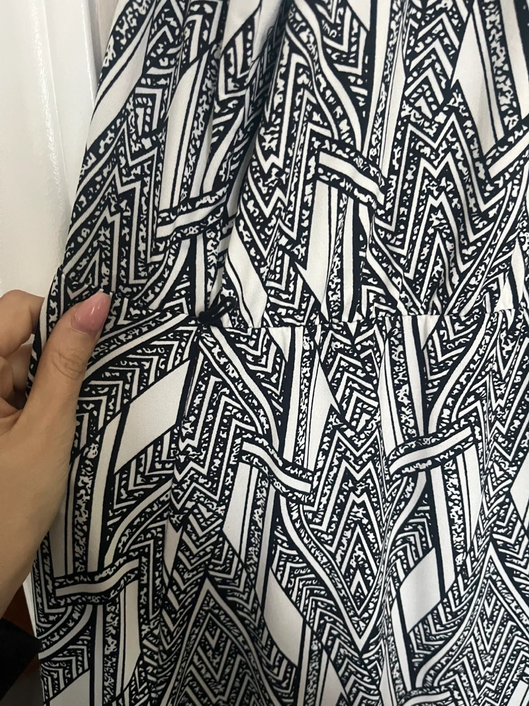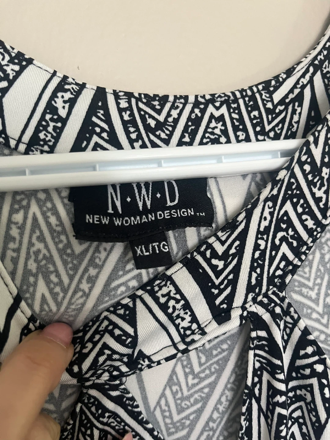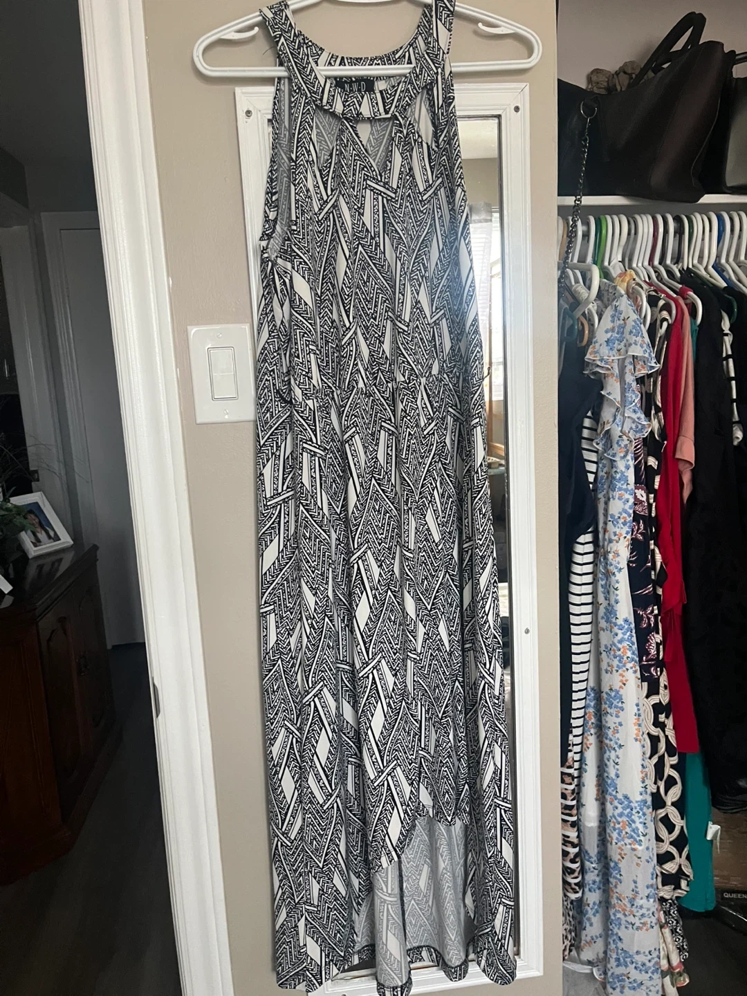 Selling a New Woman Design (NWD) maxi dress in size XL. It features a stylish black and white geometric pattern. Perfect for a casual outing or a summer day