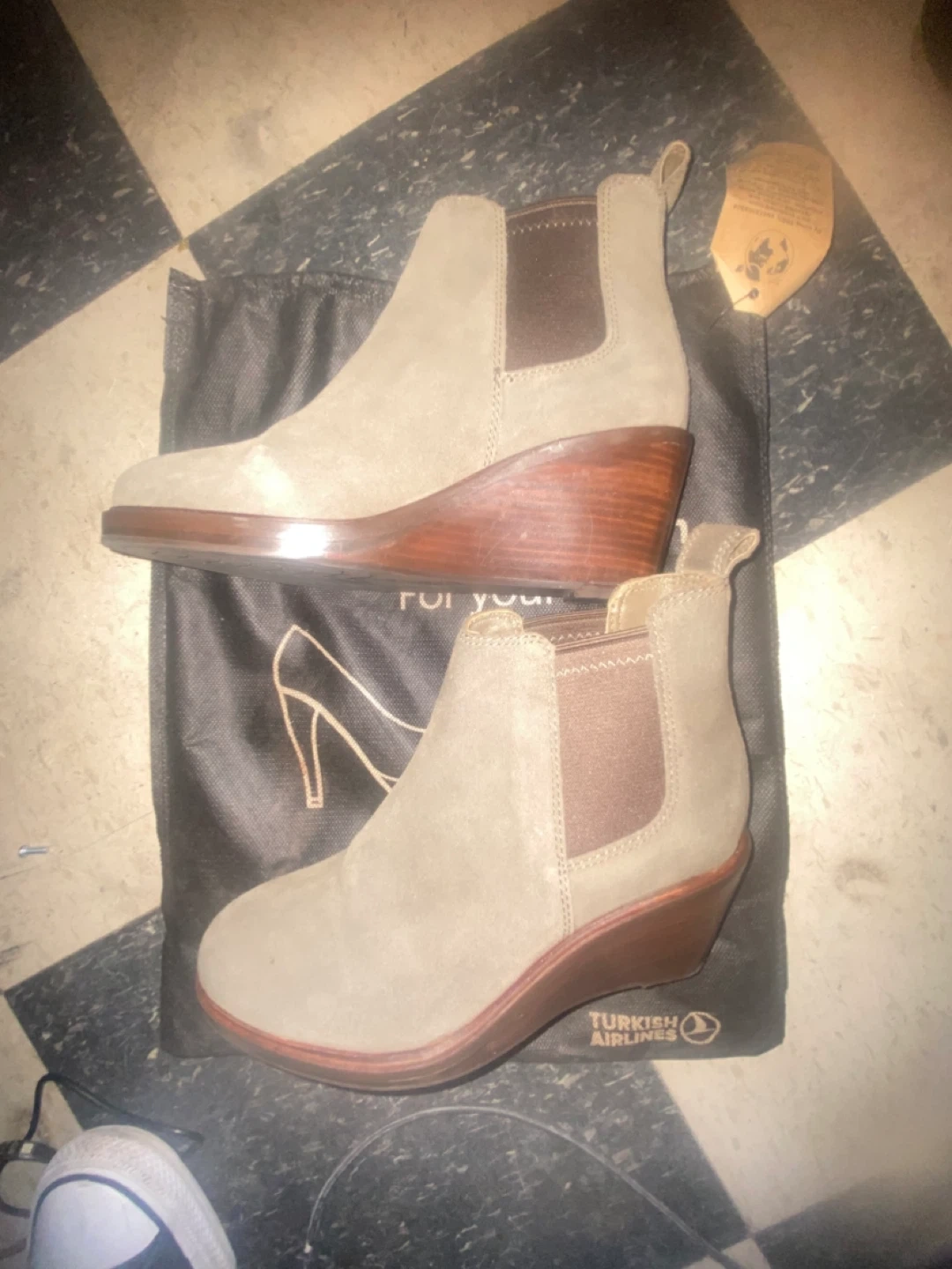 These are a pair of beige Chelsea boots. They appear to be in good condition and would be great for fall!