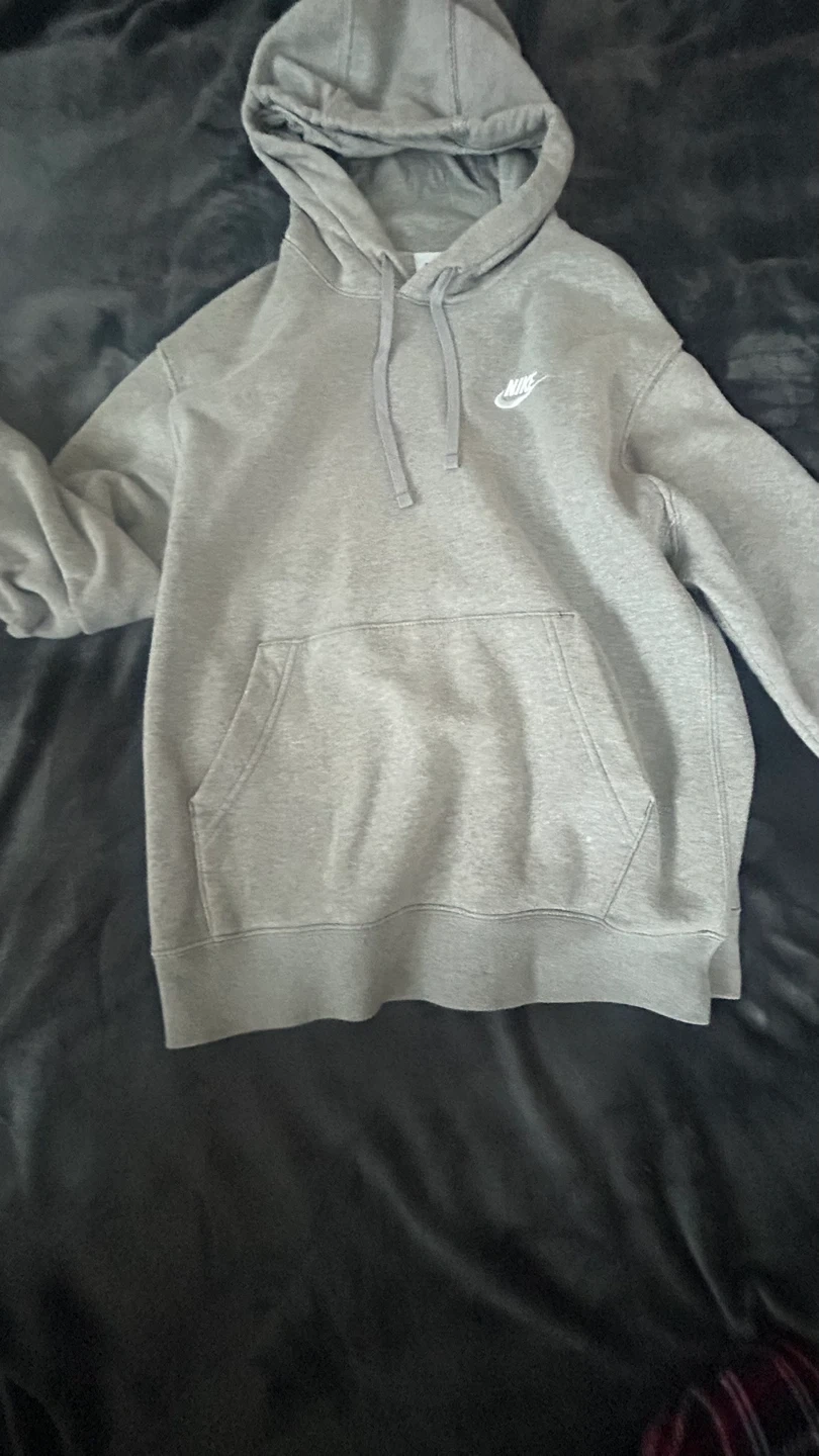 Selling a grey Nike hoodie. It's in great condition and super comfy for everyday wear! The classic Nike swoosh is on the chest.
