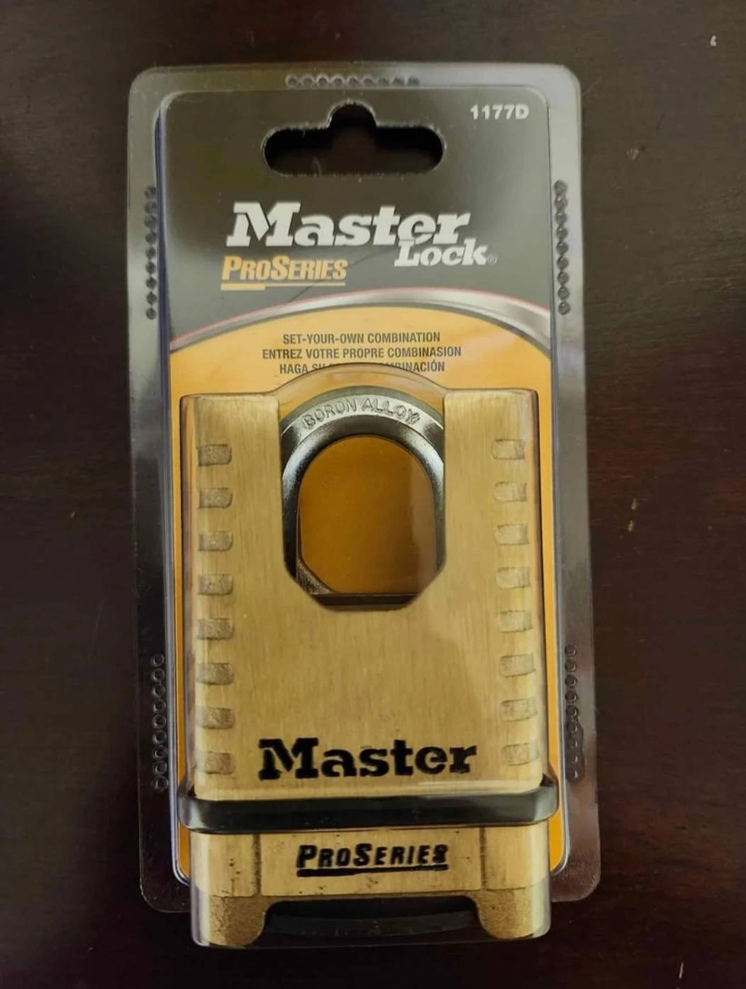 Selling a brand new Master Lock ProSeries 1177D padlock, still in its original packaging! This padlock features a set-your-own combination and a boron alloy shackle. It offers excellent performance in corrosive environments and maximum cut resistance. Get secure protection with this durable lock!