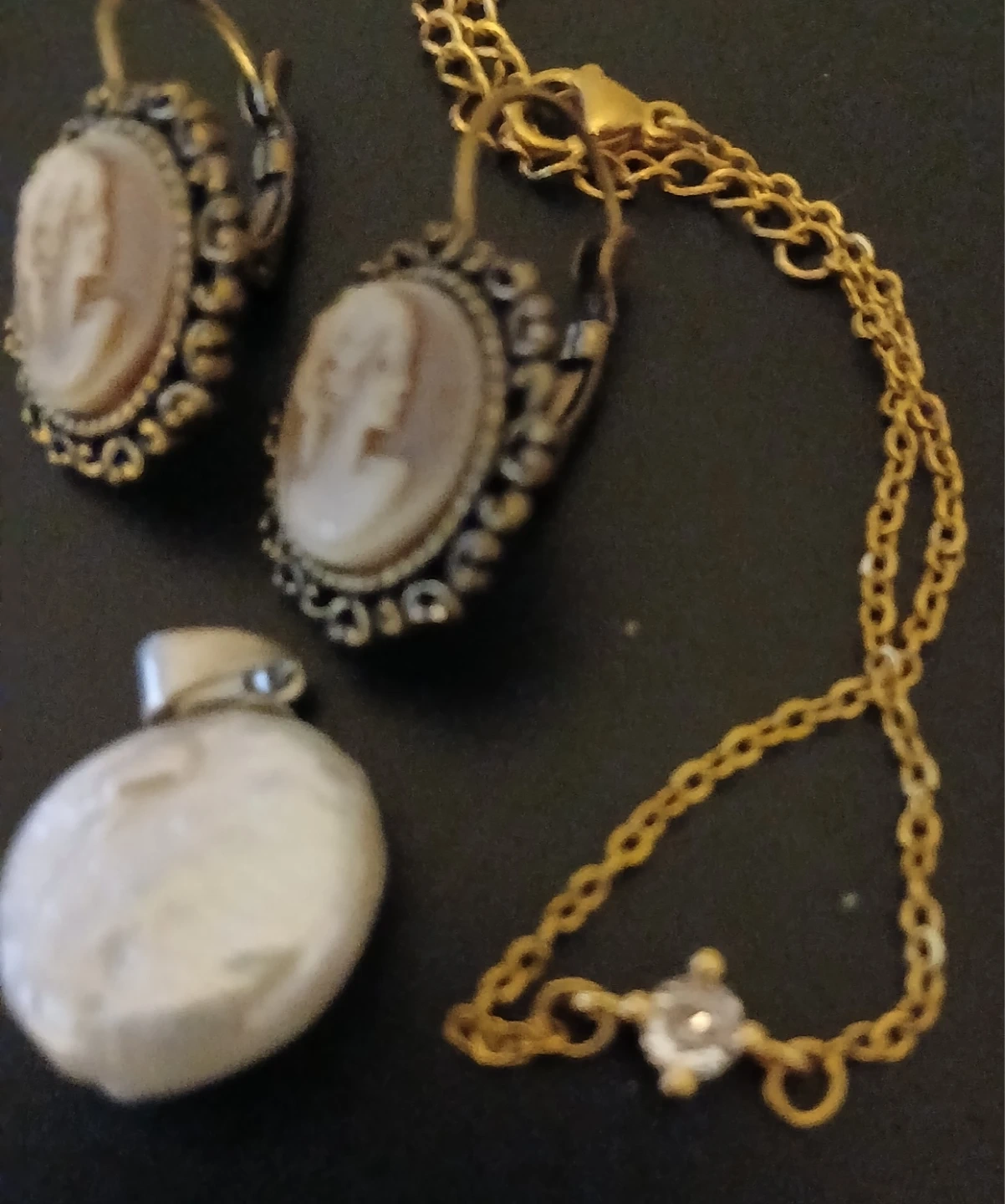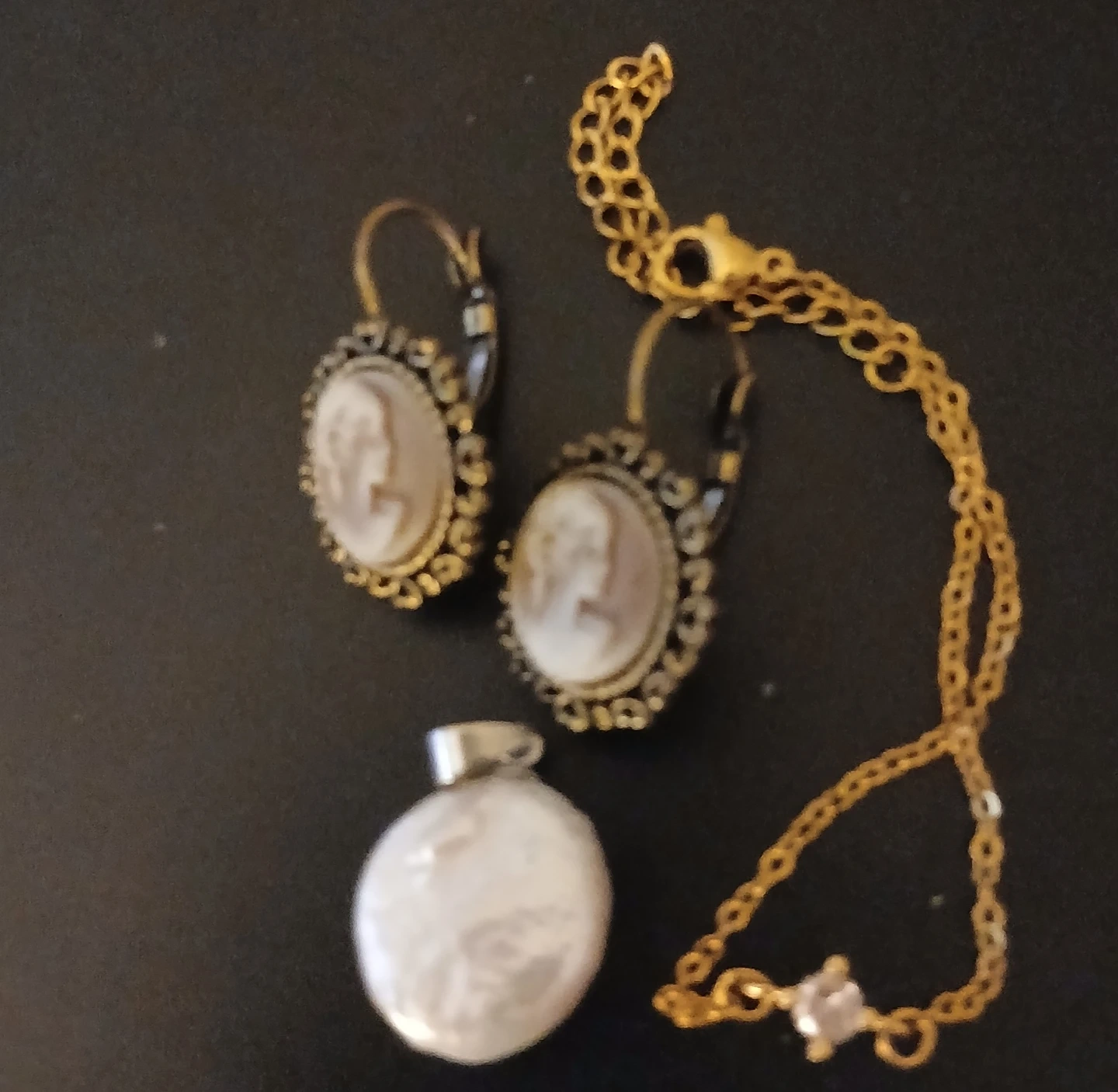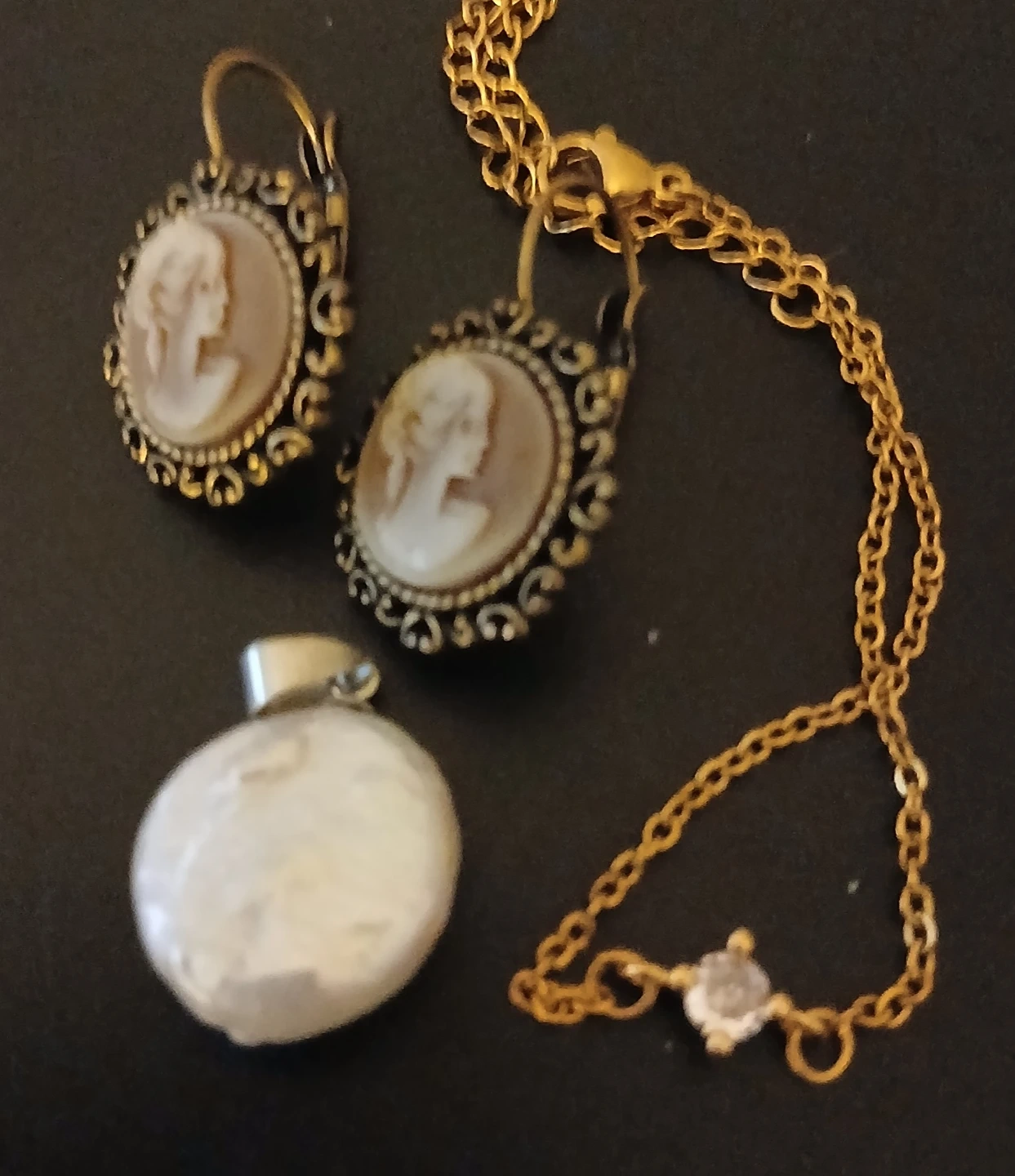 Vintage Style Cameo Earrings & baroque pearl pendant