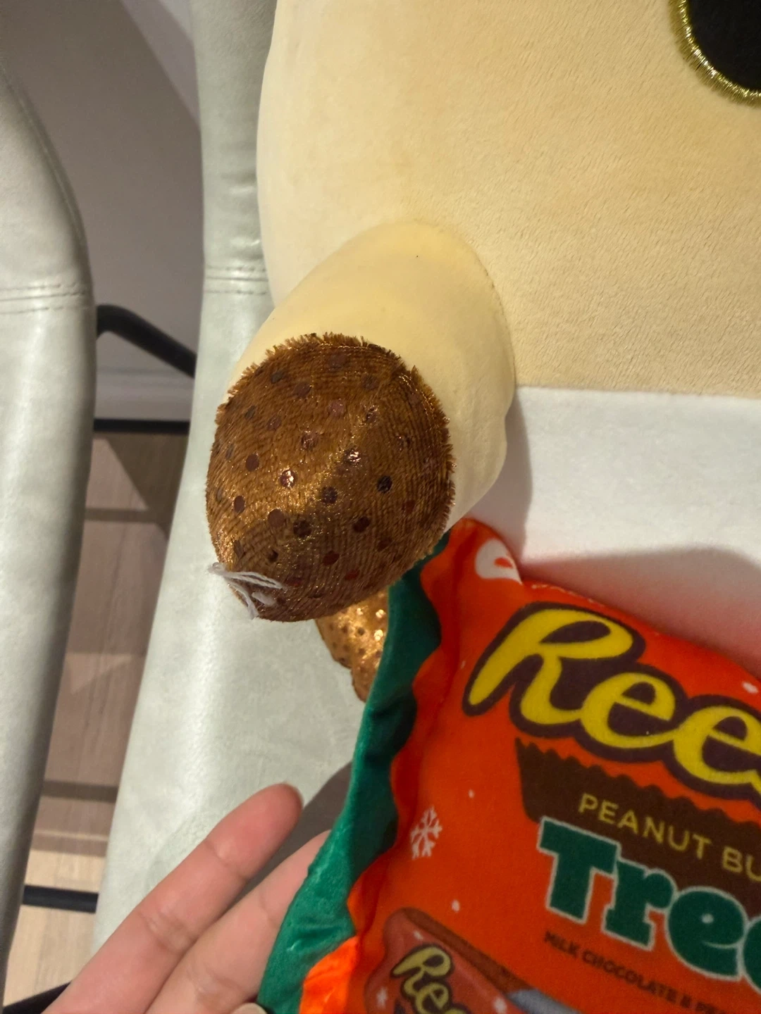 the stitching came off one side (it’s supposed to be holding onto the reese’s in both hands.