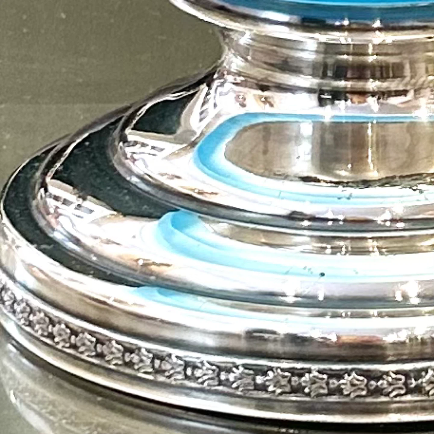 These glass-and-silver mounted compotes were produced as luxury centerpieces for formal dining rooms, salons, and consoles, and were often sold through upscale retailers rather than mass-market outlets.