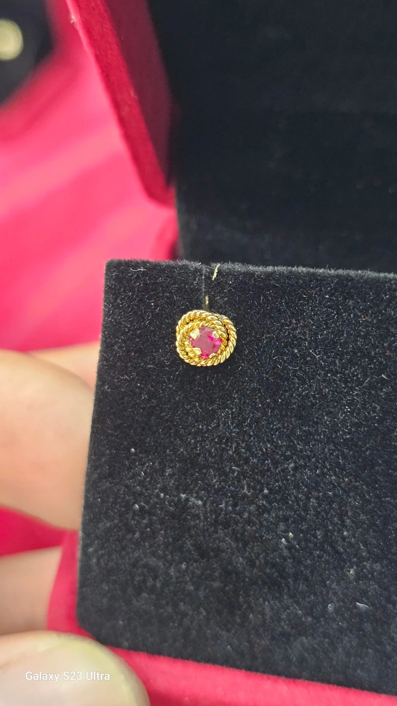 Gold 18k Stud with zafiro Red Gemstone