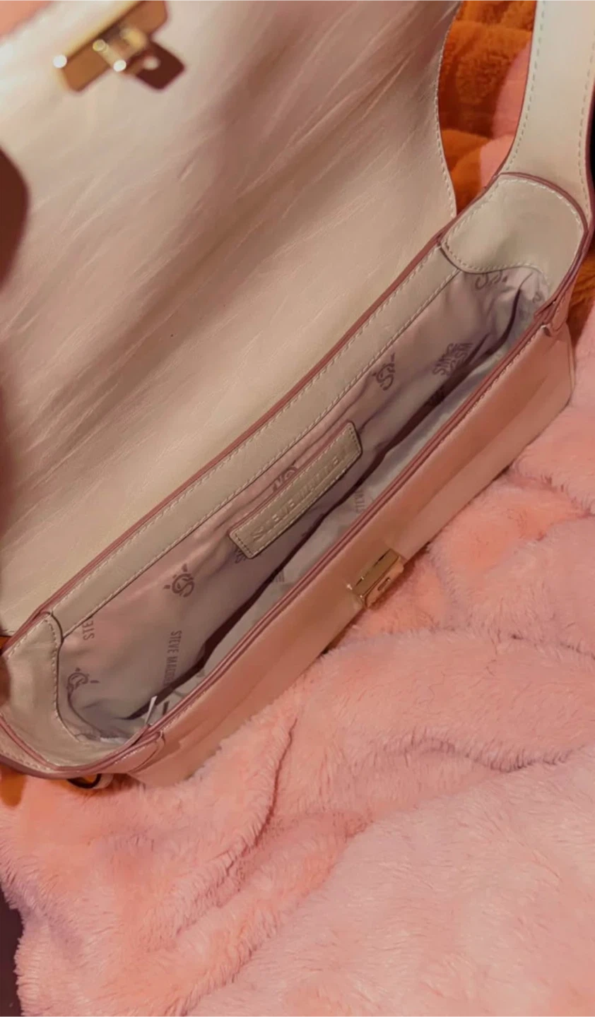 Here's a cute Steve Madden BCelena bag in a natural multi colour! It's in great condition and ready for a new owner. The inside lining has the Steve Madden logo. Retails for $98