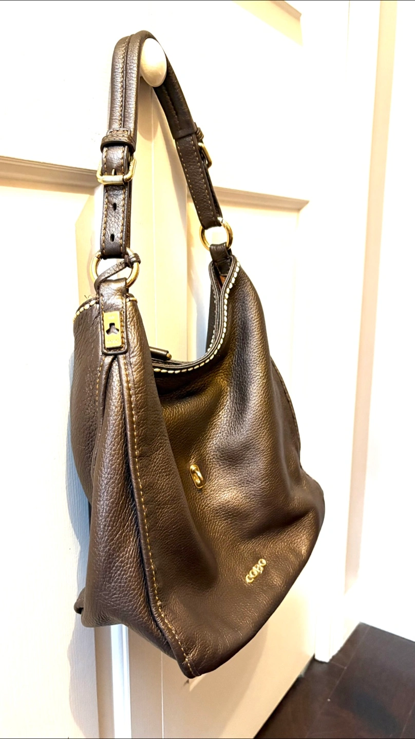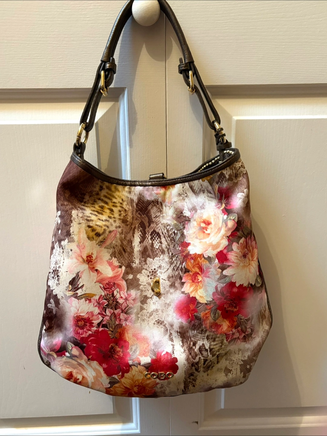 A stylish COBO hobo bag in a beautiful brown leather! The interior has a lovely floral and animal print design. It's in great condition and ready for a new owner.