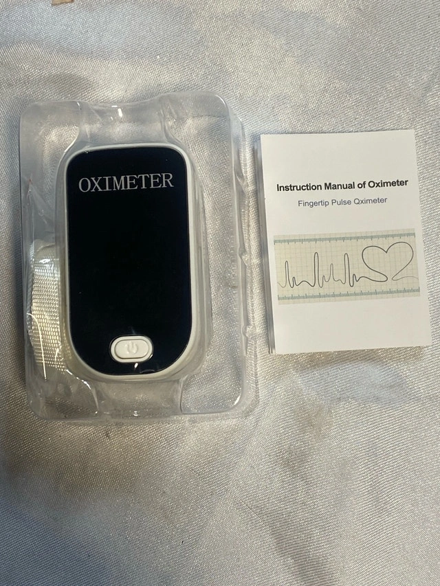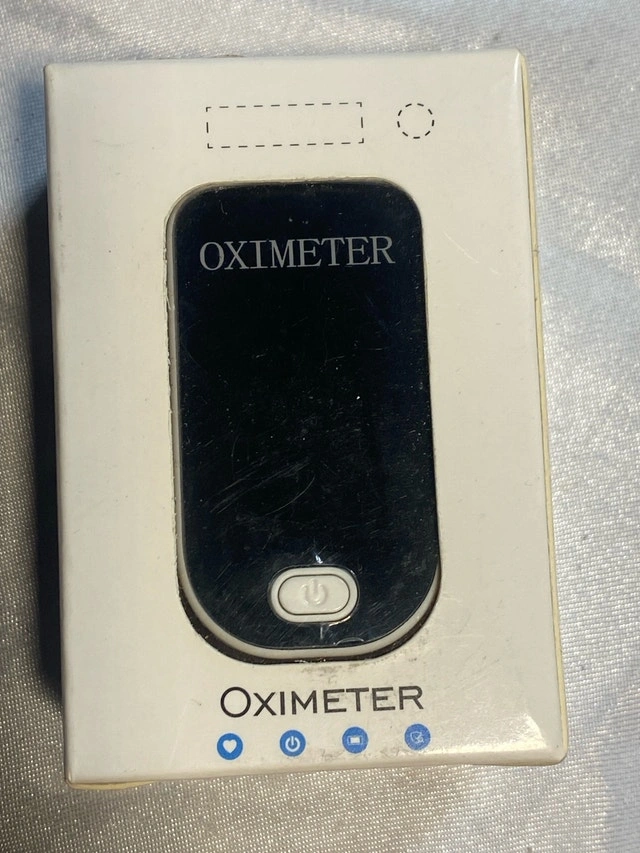 This fingertip pulse oximeter is designed for accurate blood oxygen level and heart rate monitoring. It's in like new condition and comes with its original box and instructions.
