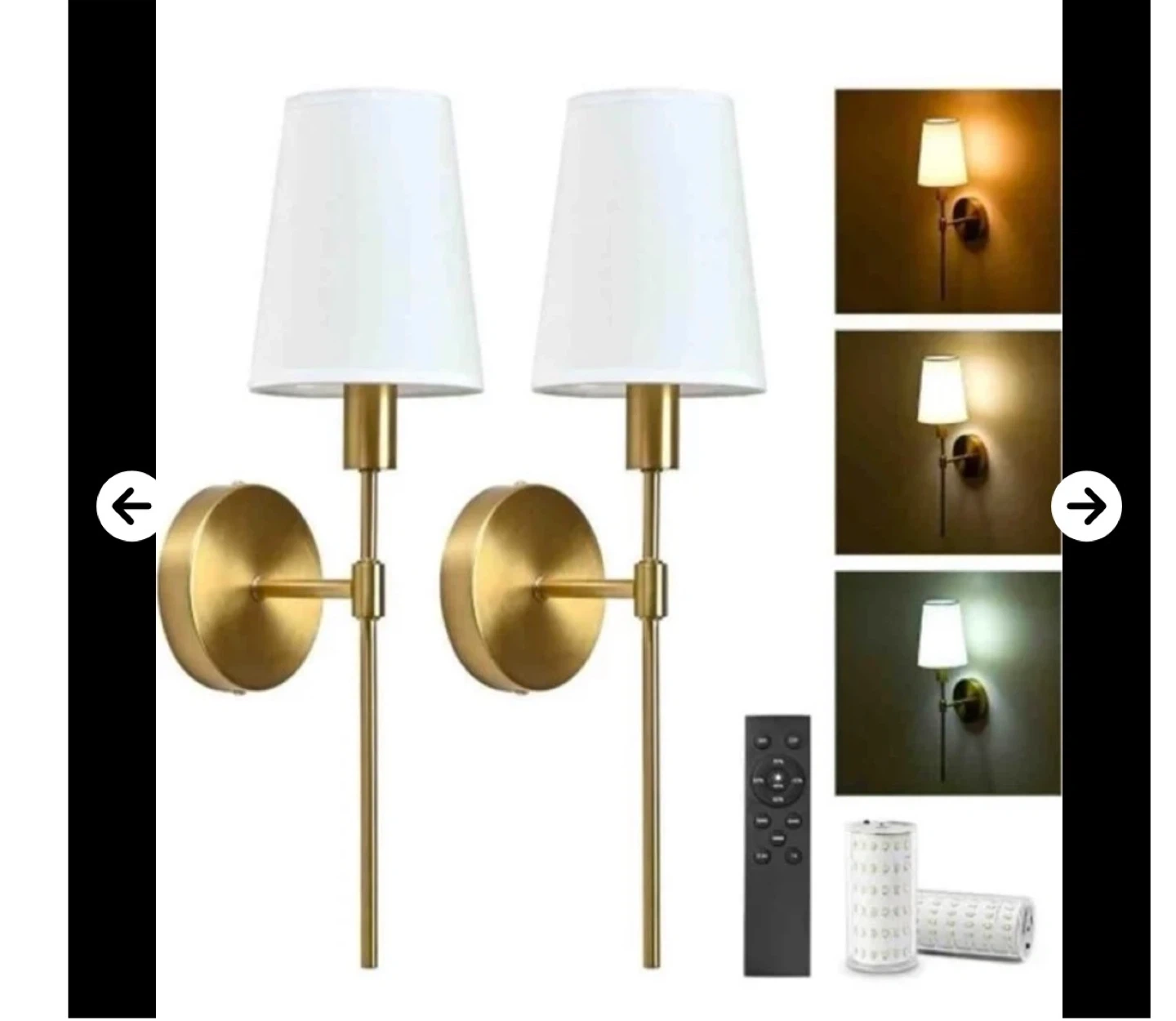 Selling a BAKZARY battery operated wall sconce set of 2. These white fabric shade rechargeable wall lights come with 2 * 5200mAh magnetic battery bulbs. They are 3CCT selectable, dimmable wireless sconces for the bedroom, living room, or hallway. Includes a remote. Originally estimated MSRP: $60