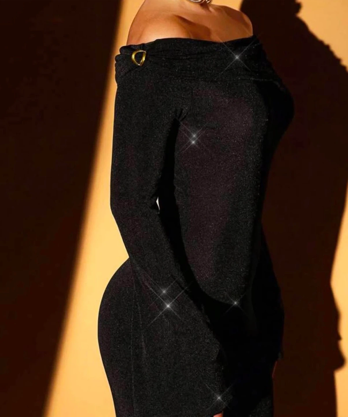 Selling a stylish black off-shoulder long sleeve dress. This dress is perfect for a night out or a special occasion. It features a unique off-shoulder design and long sleeves, making it both fashionable and comfortable. The dress has a sleek and flattering fit.