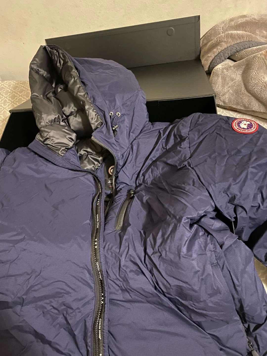 Selling a Canada Goose jacket in navy. It comes with its original box and hanger. Great for staying warm during the colder months! XL got it as a gift but never used it so selling for extra cash. Message for any questions.