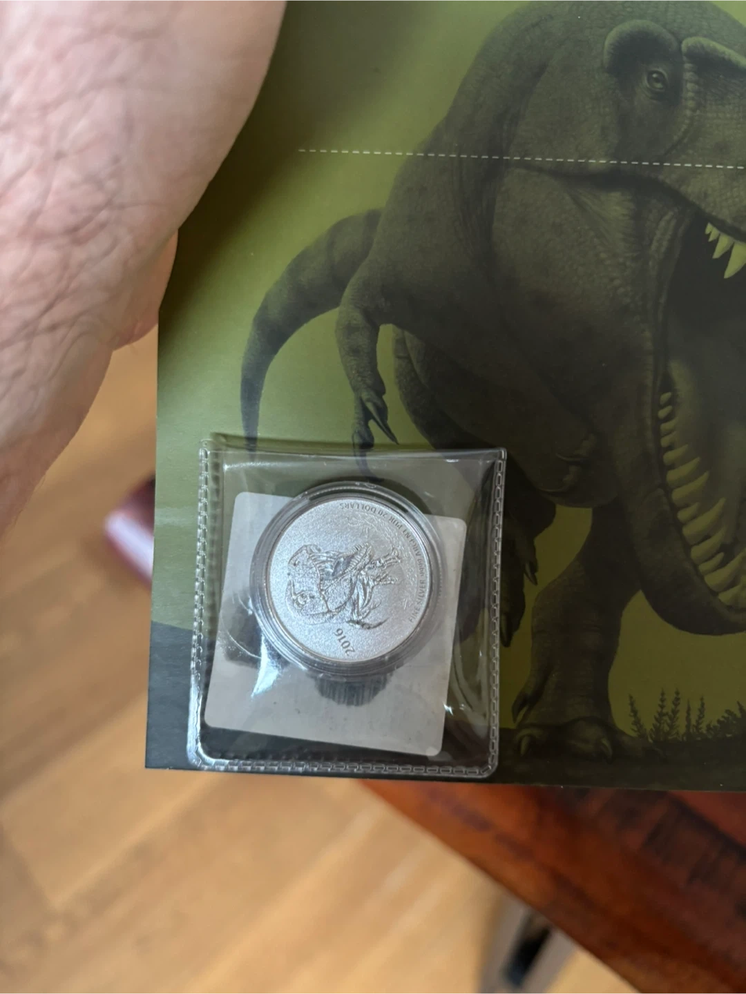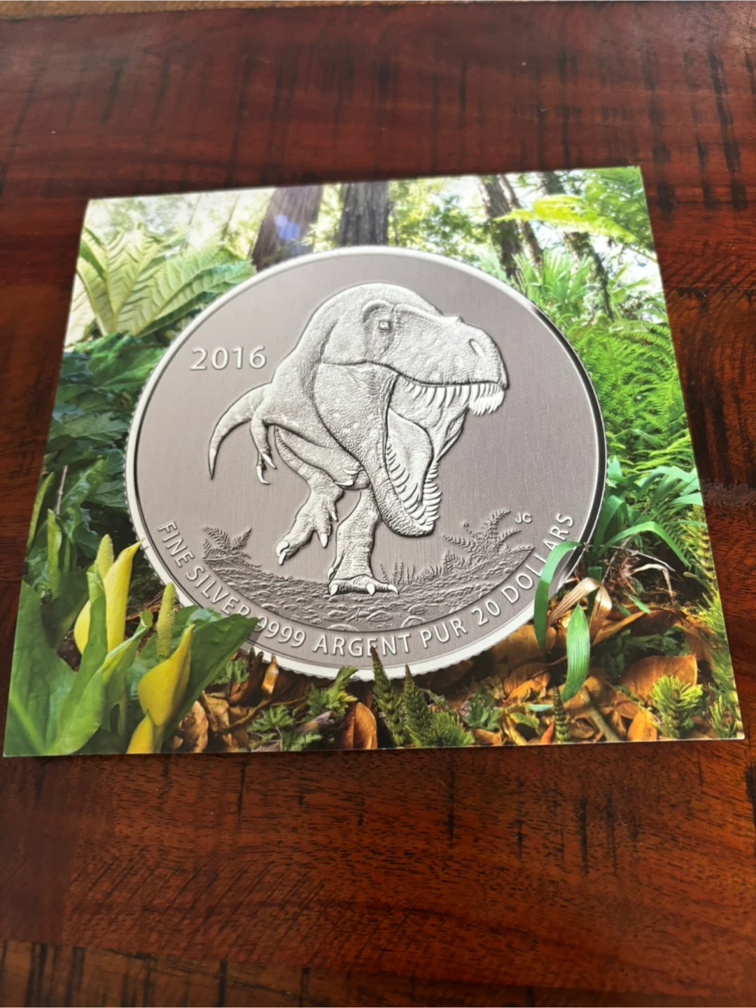 Selling a 2016 Fine Silver 9999 Tyrannosaurus Rex 20 Dollars coin. It's a beautiful coin with a detailed design of a Tyrannosaurus Rex. A great addition to any coin collection!