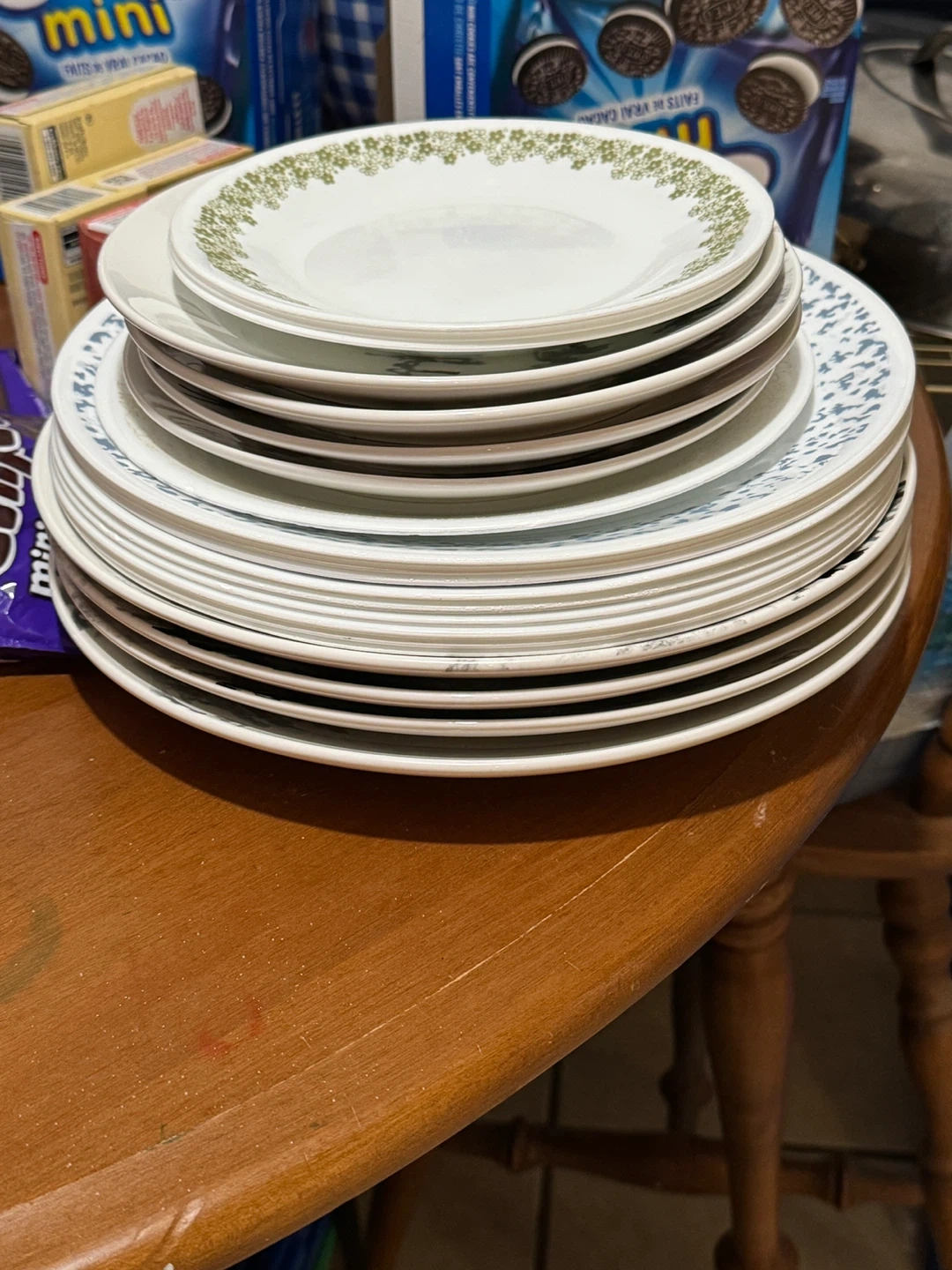 Selling a set of 13 dinner plates! They're in good condition and ready for a new home. 4 of the plates and saucers have a deer type print in black/grey. Great for everyday use or special occasions, these plates are lightweight and durable. Perfect for any kitchen!