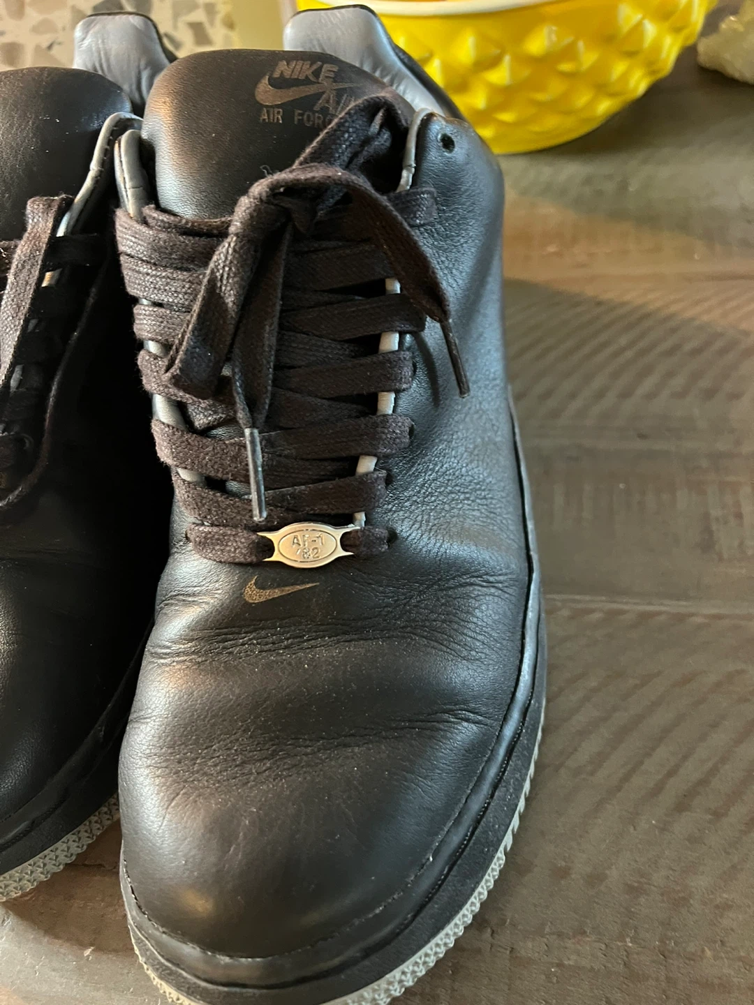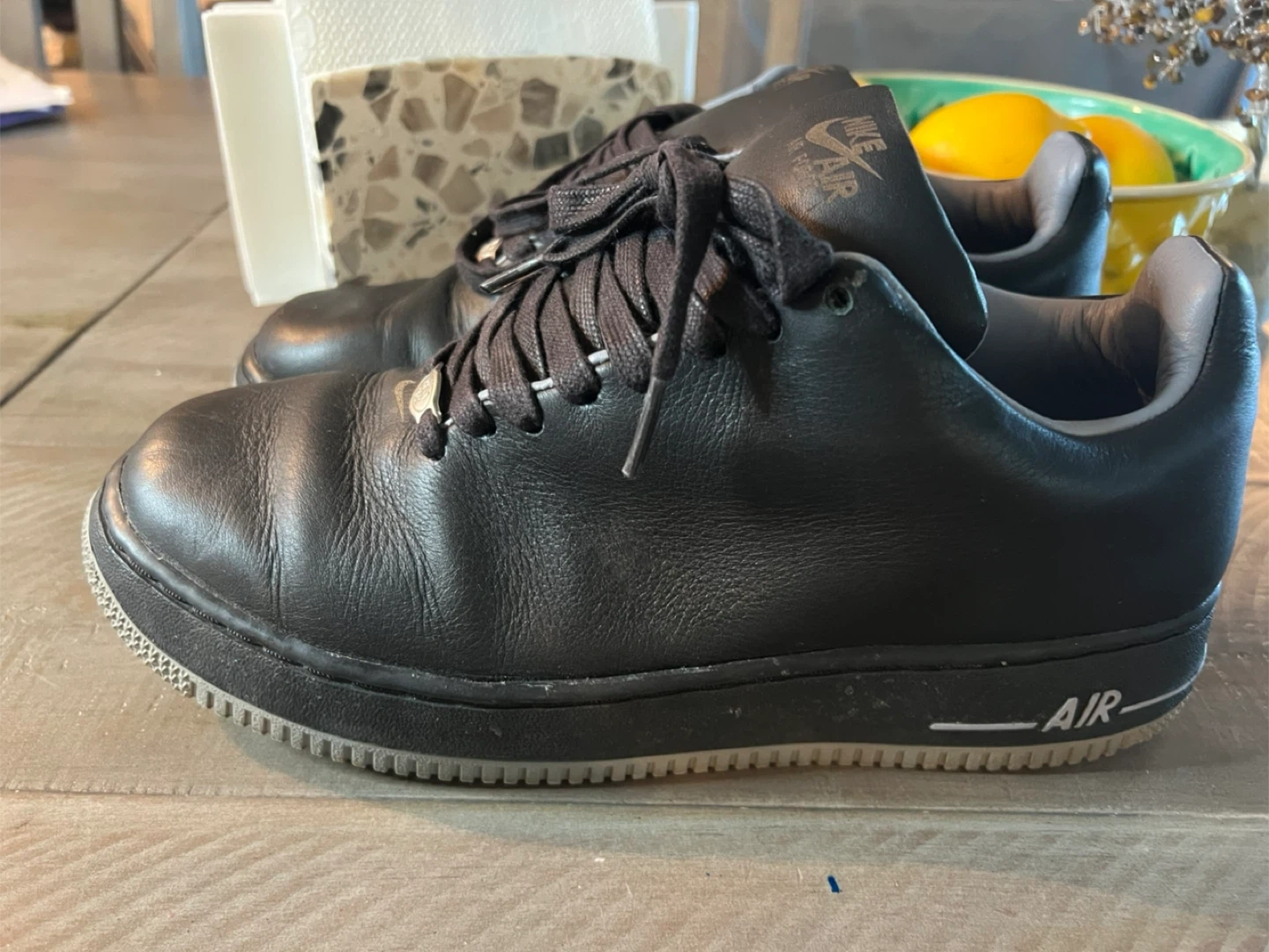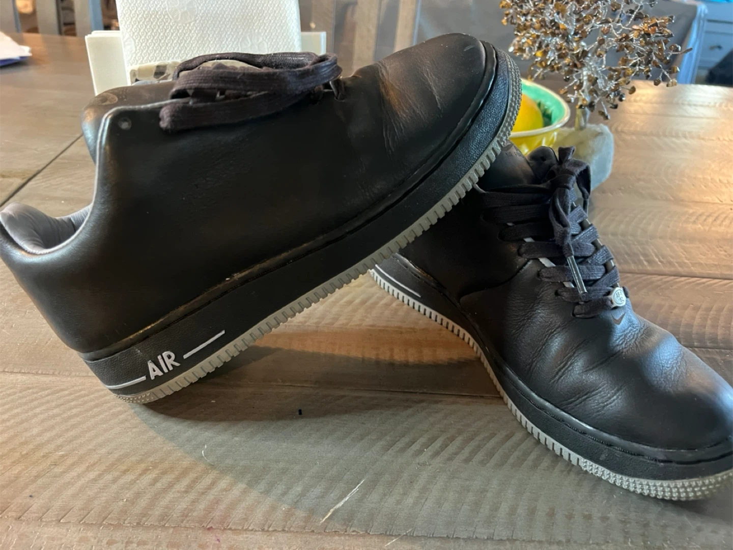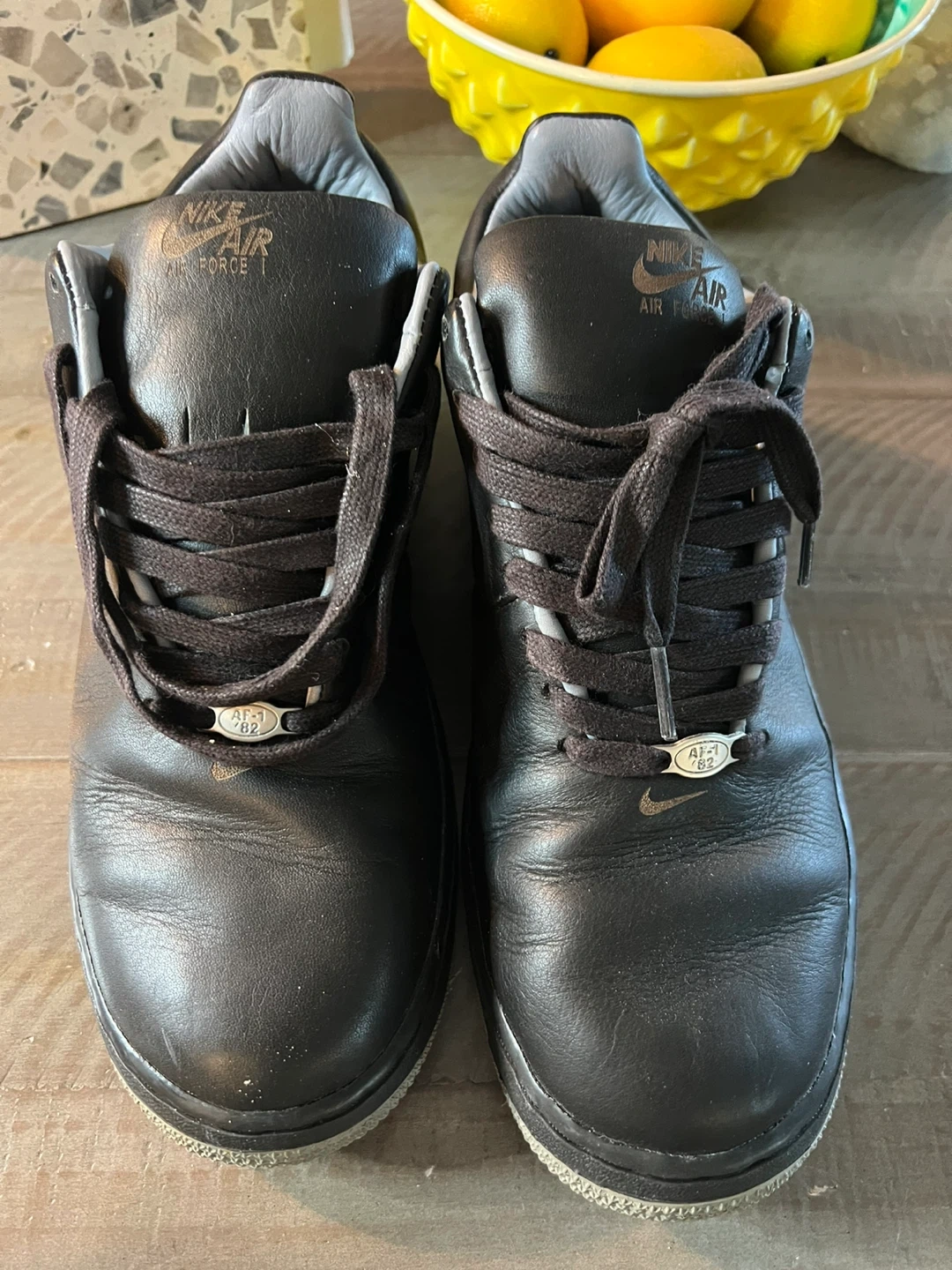 Selling a pair of Nike Air Force 1s in black leather! They are in used condition as pictured.
