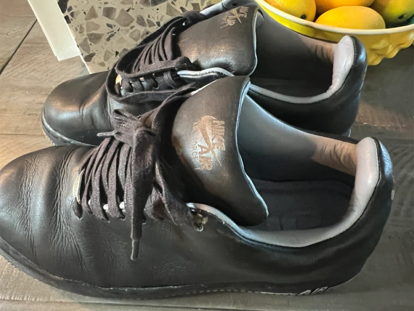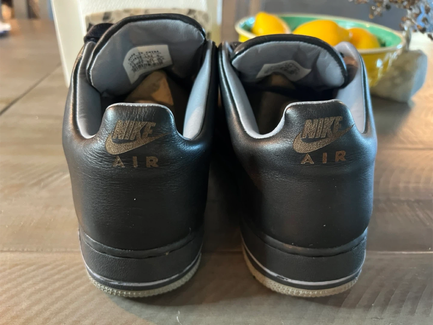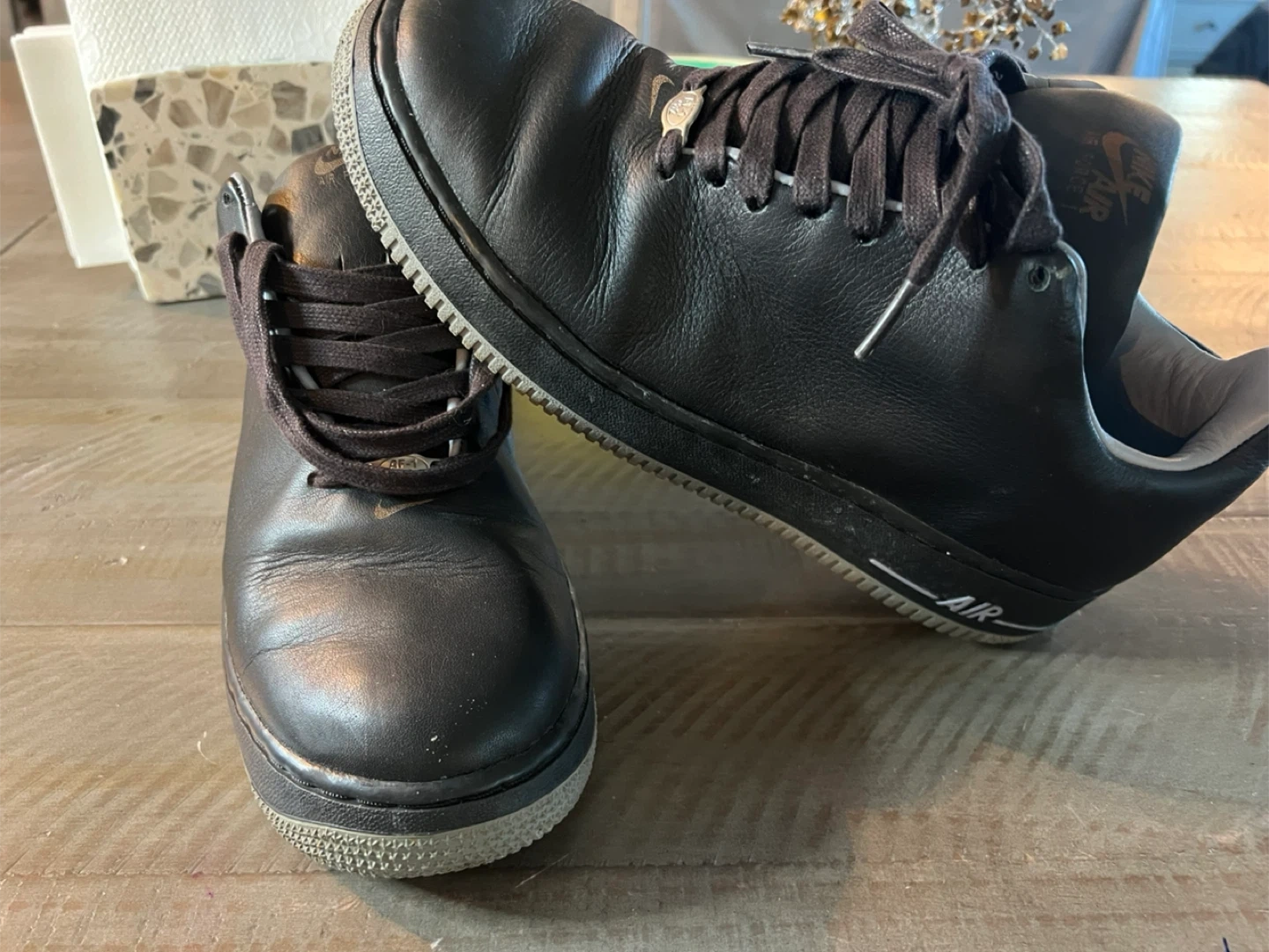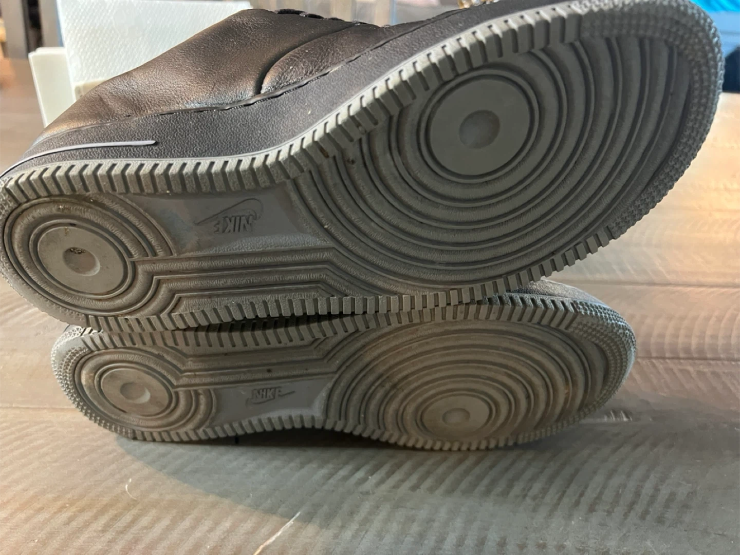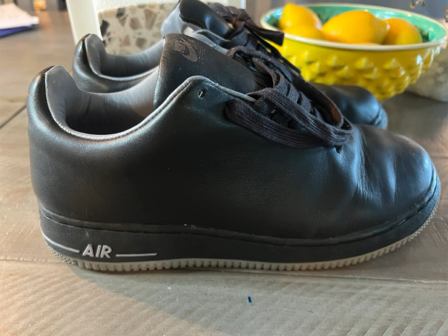 Selling a pair of Nike Air Force 1s in black leather! They are in used condition as pictured.