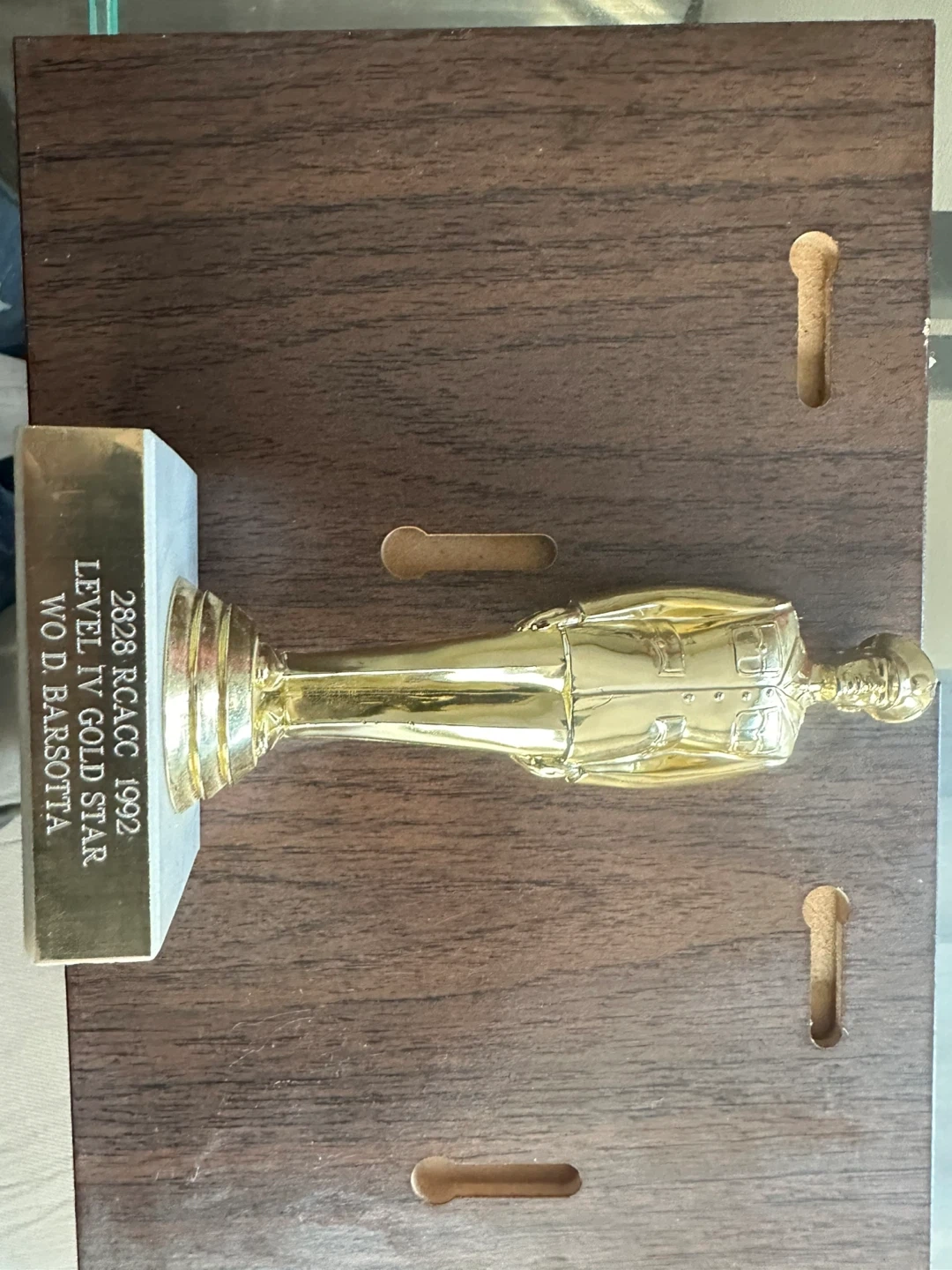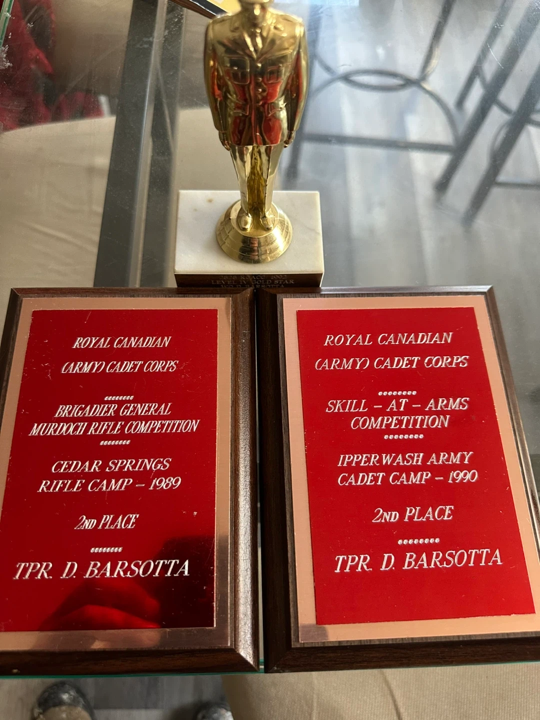 Selling a Royal Canadian Army Cadet Corps Level IV Gold Star trophy. It's in good condition and would be great for a collector or someone interested in military memorabilia