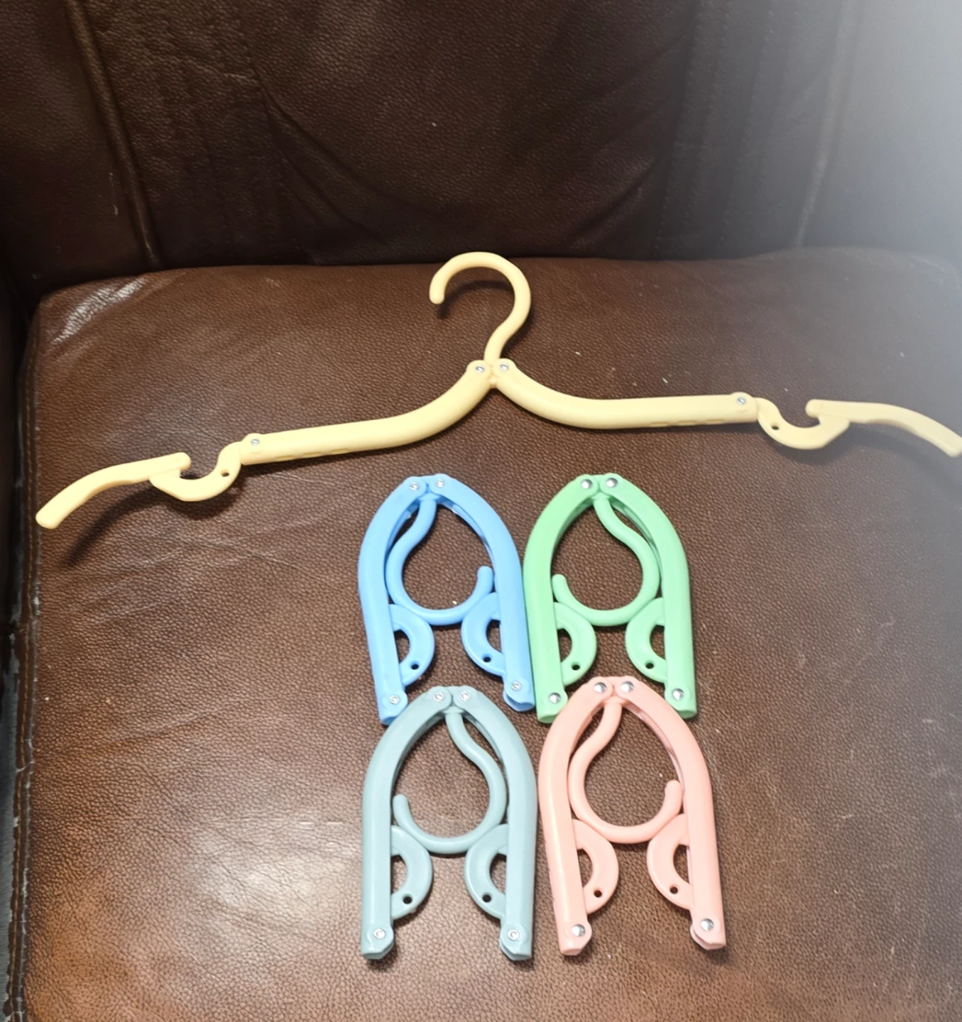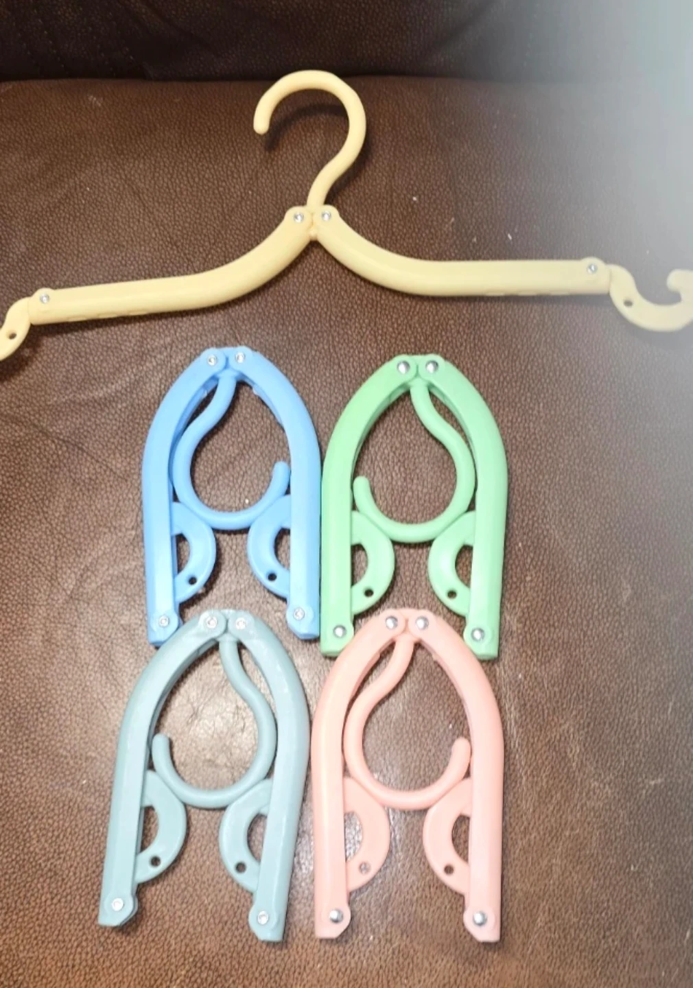 Selling a set of 5 folding travel hangers! These are perfect for saving space in your luggage or closet. They come in a variety of pastel colours.