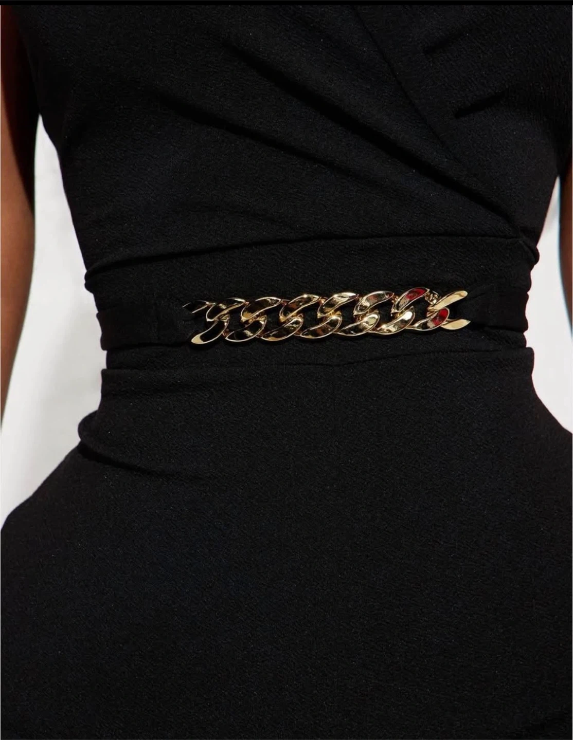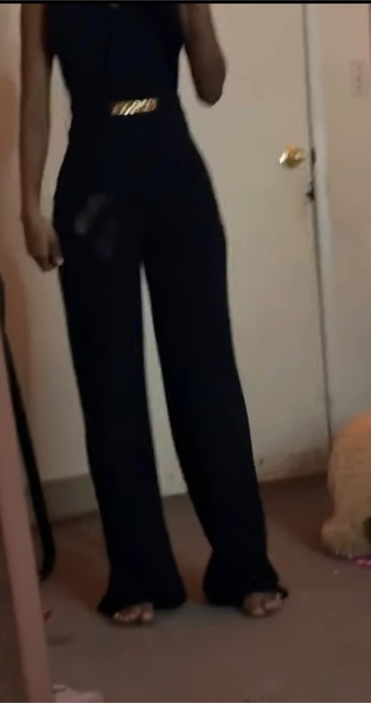 Black Jumpsuit with Gold Chain Belt