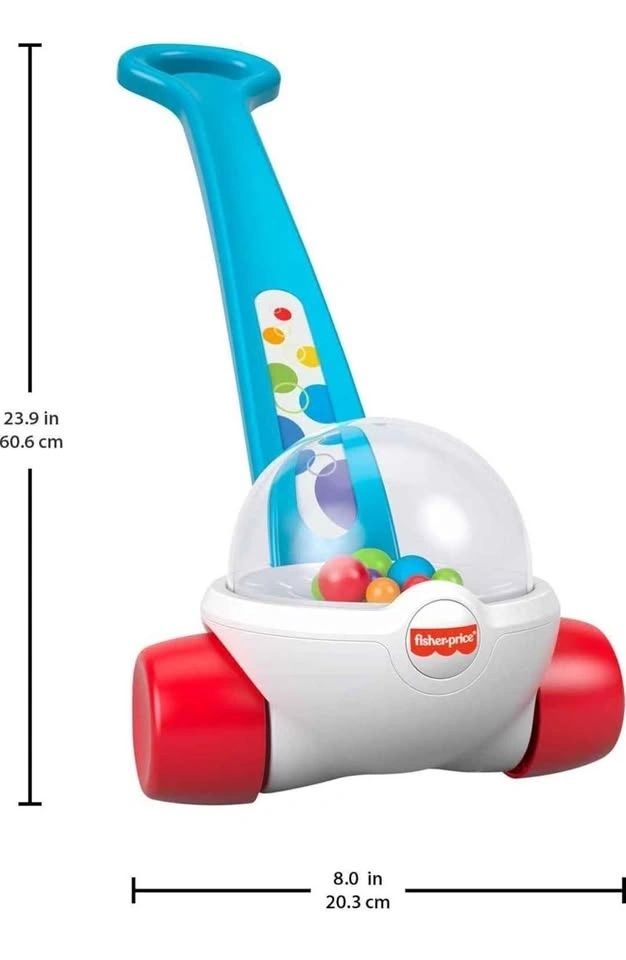 Fisher-Price Baby & Toddler Toy Corn Popper Blue Push-Along with Ball-Popping Action for Infants Ages 1+ Years, 2-Piece Assembly
