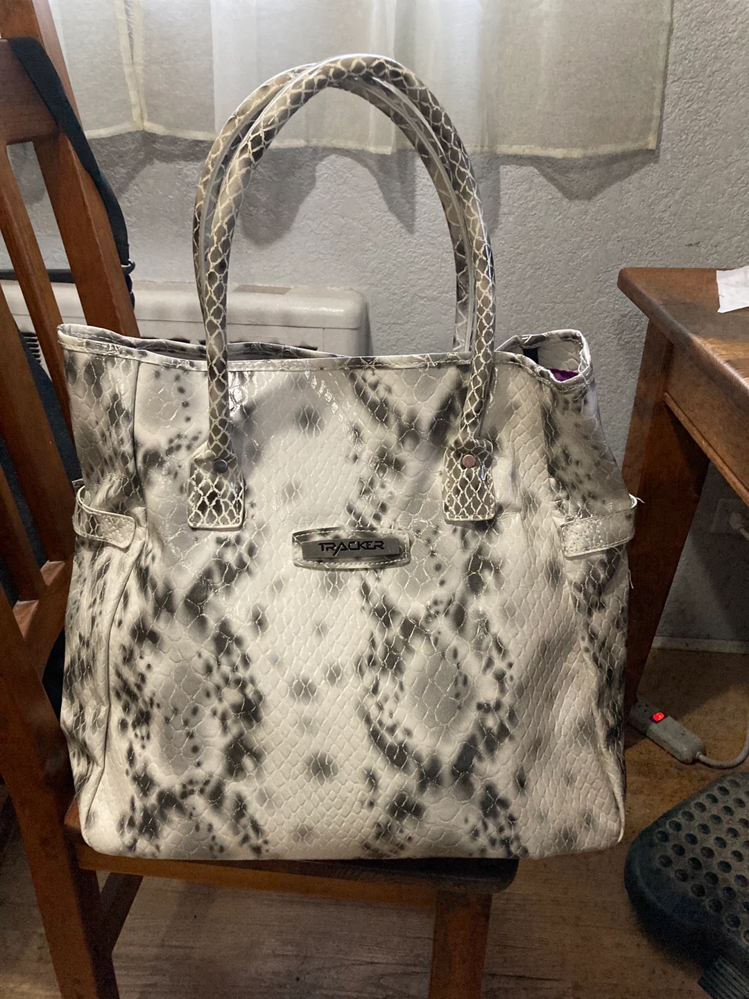 Stylish Tracker tote bag with a snakeskin pattern! It's in great condition and ready for a new owner. Perfect for carrying all your essentials in style