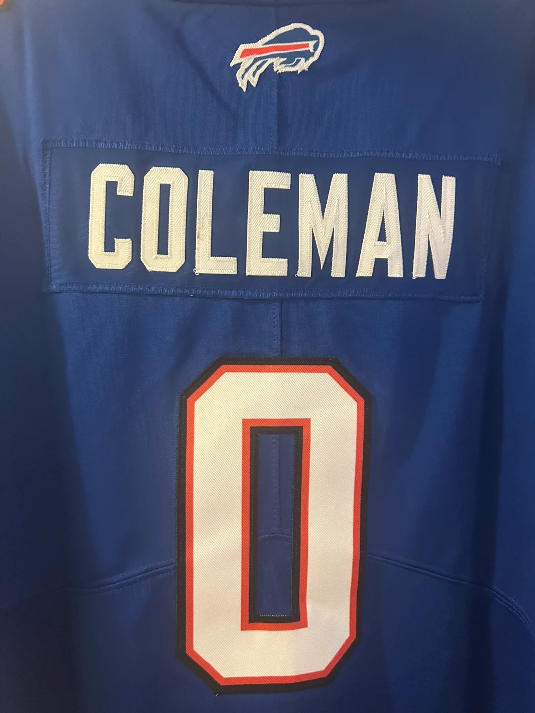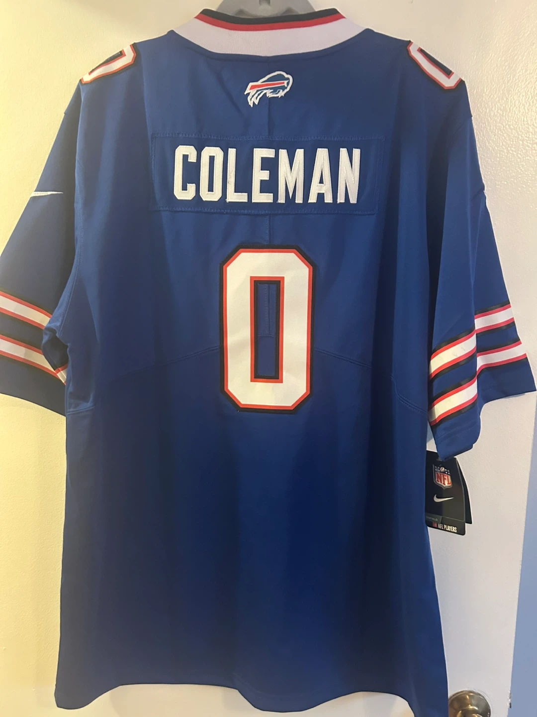 Selling a Nike NFL Buffalo Bills home jersey in size XXL. But it’s the player style fit so more of a xl The jersey is blue with accent if white and red and features the number 0 and the name COLEMAN on the back. It's in great condition never worn as it was the wrong size for me. It’s from a pet free and smoke free home in south Etobicoke m8w1b2
