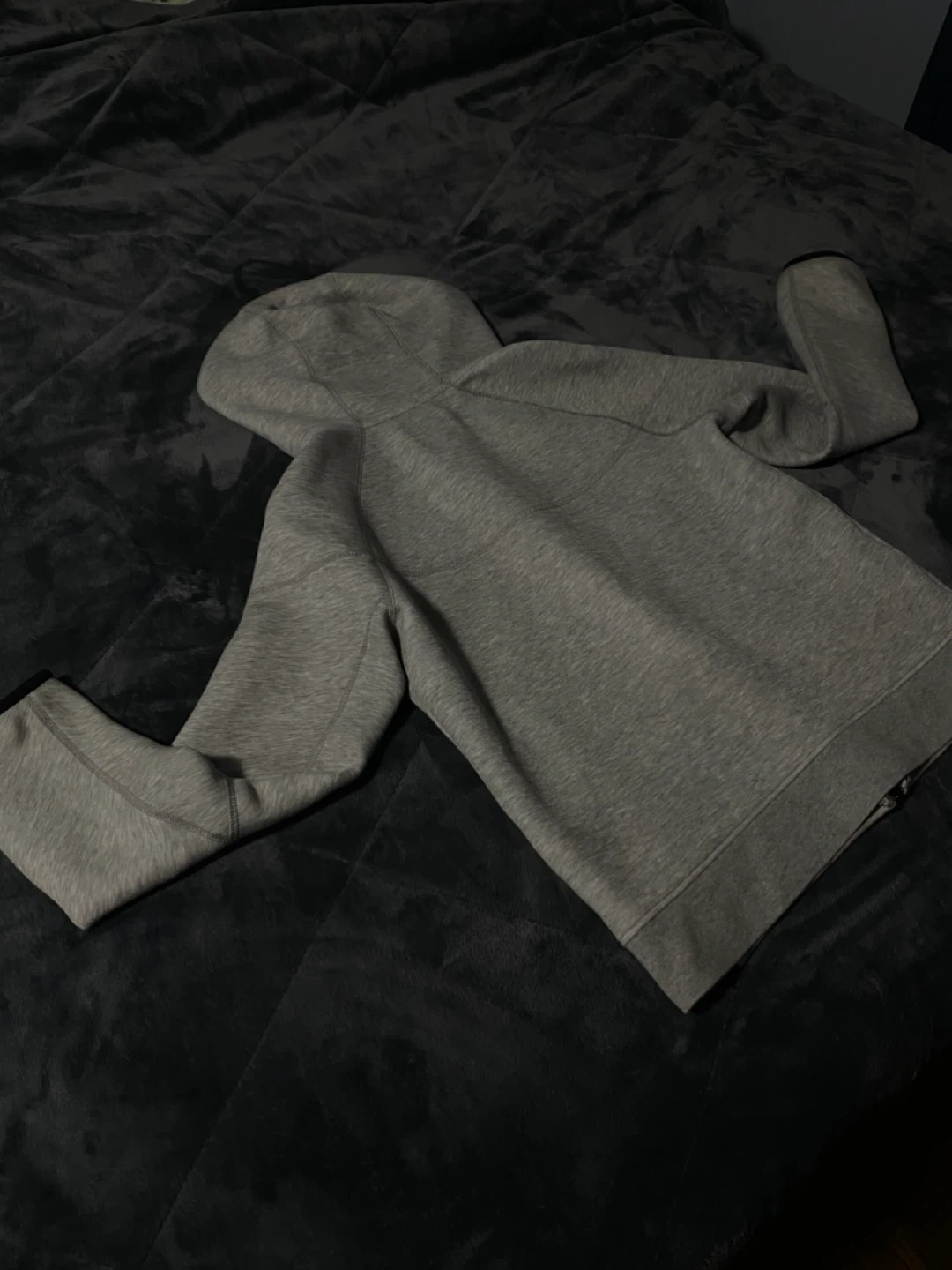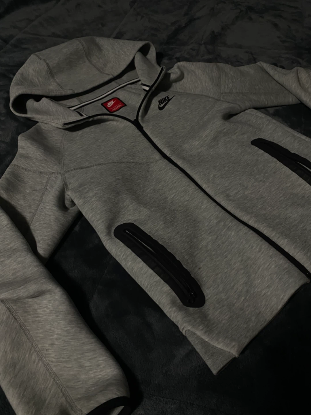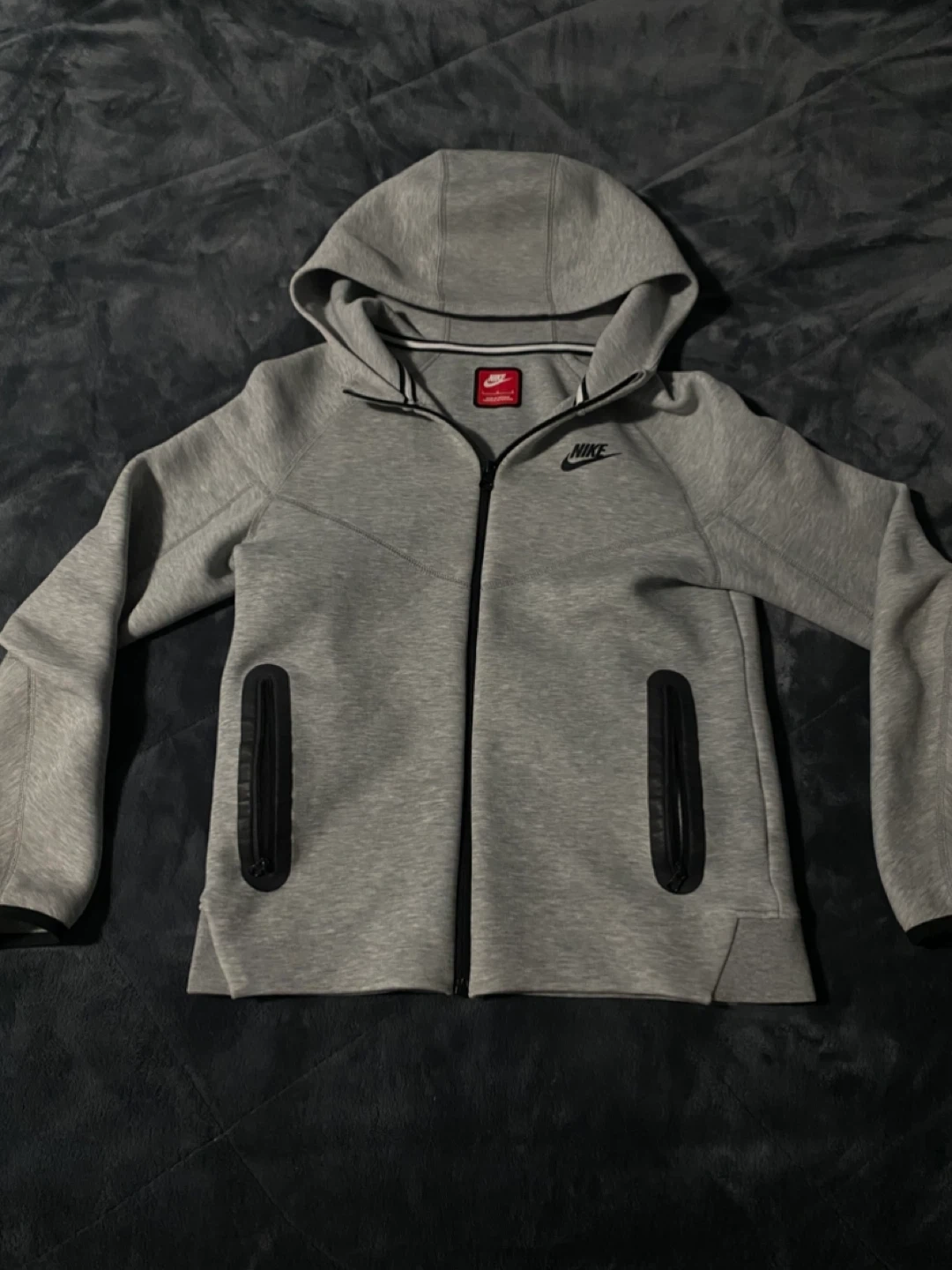 Selling a Nike Tech Fleece hoodie in grey, size large in kids. It's in great condition used it once because it’s too small
