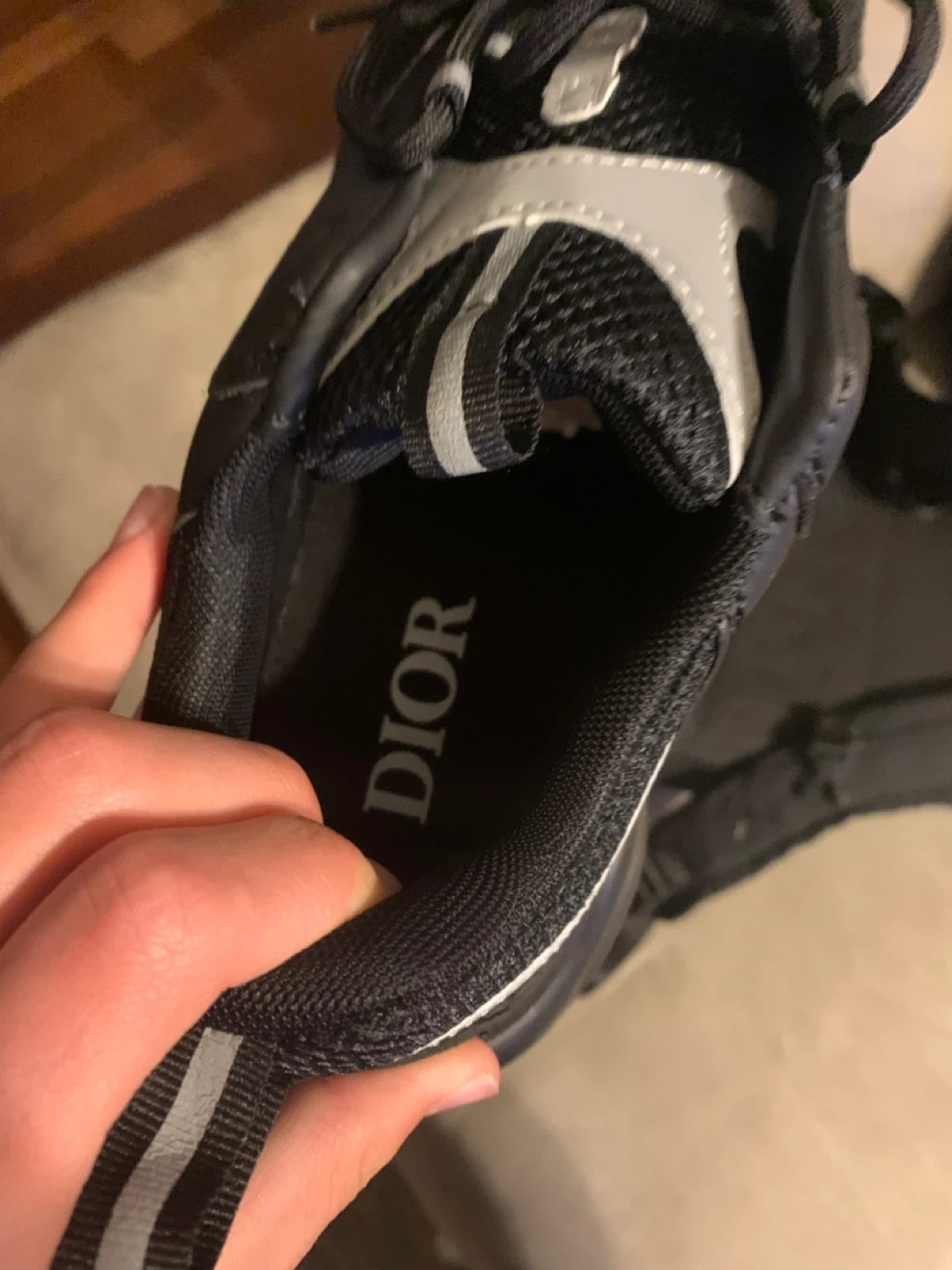 Selling a pair of Dior b22 REP sneakers in black. They are brand new they have a reflective design. I have multiple of them so feel free to buy as much as you want.