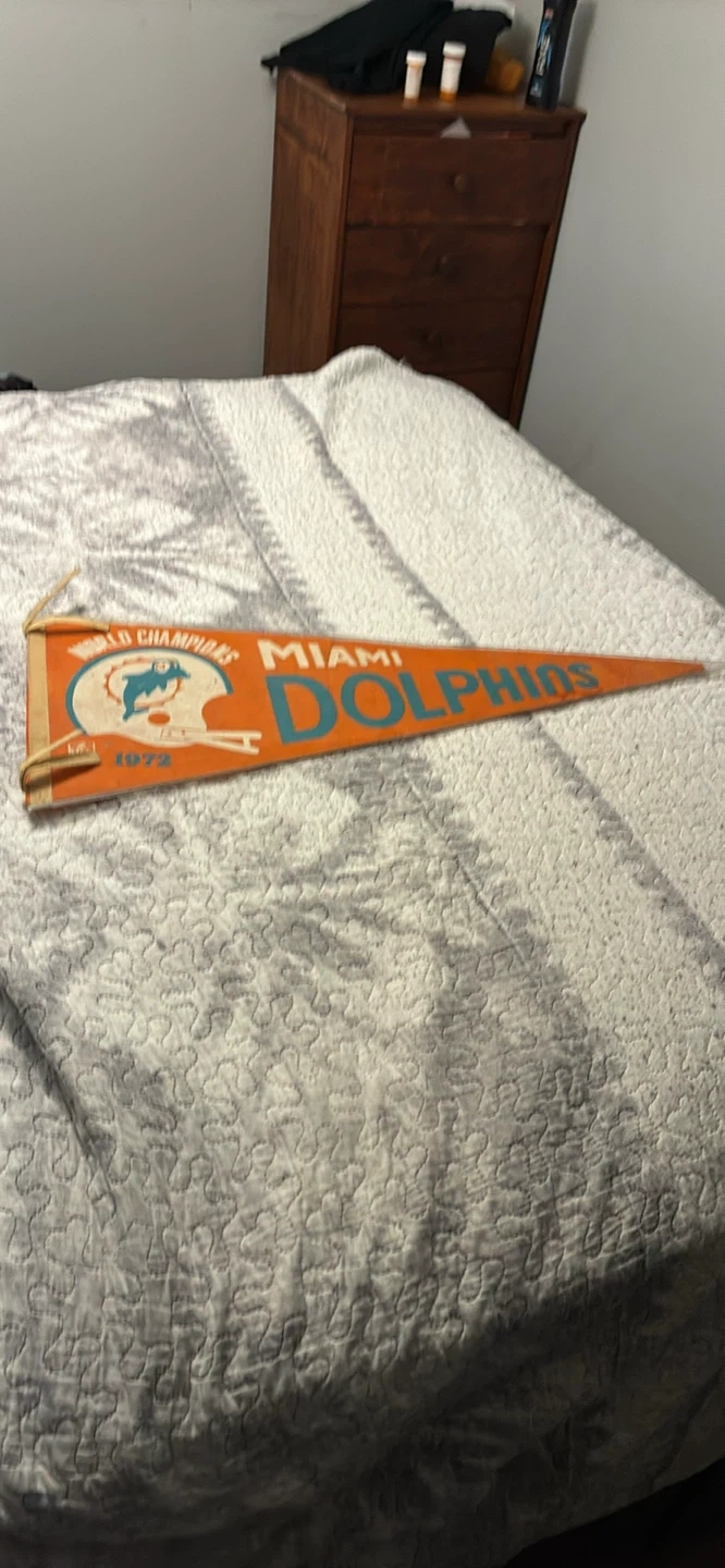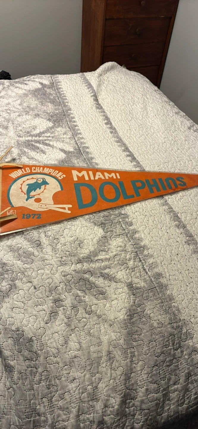 Selling a vintage Miami Dolphins pennant celebrating their 1972 World Championship win! Great for any Dolphins fan or collector of sports memorabilia
