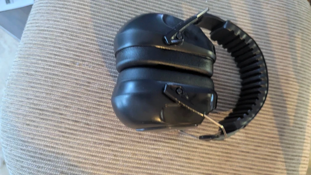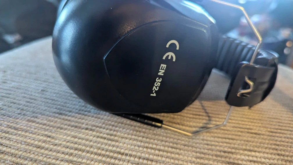 Selling black ear protection. It appears to be in good condition and is marked with 'EN 352-1'. Great for reducing noise!